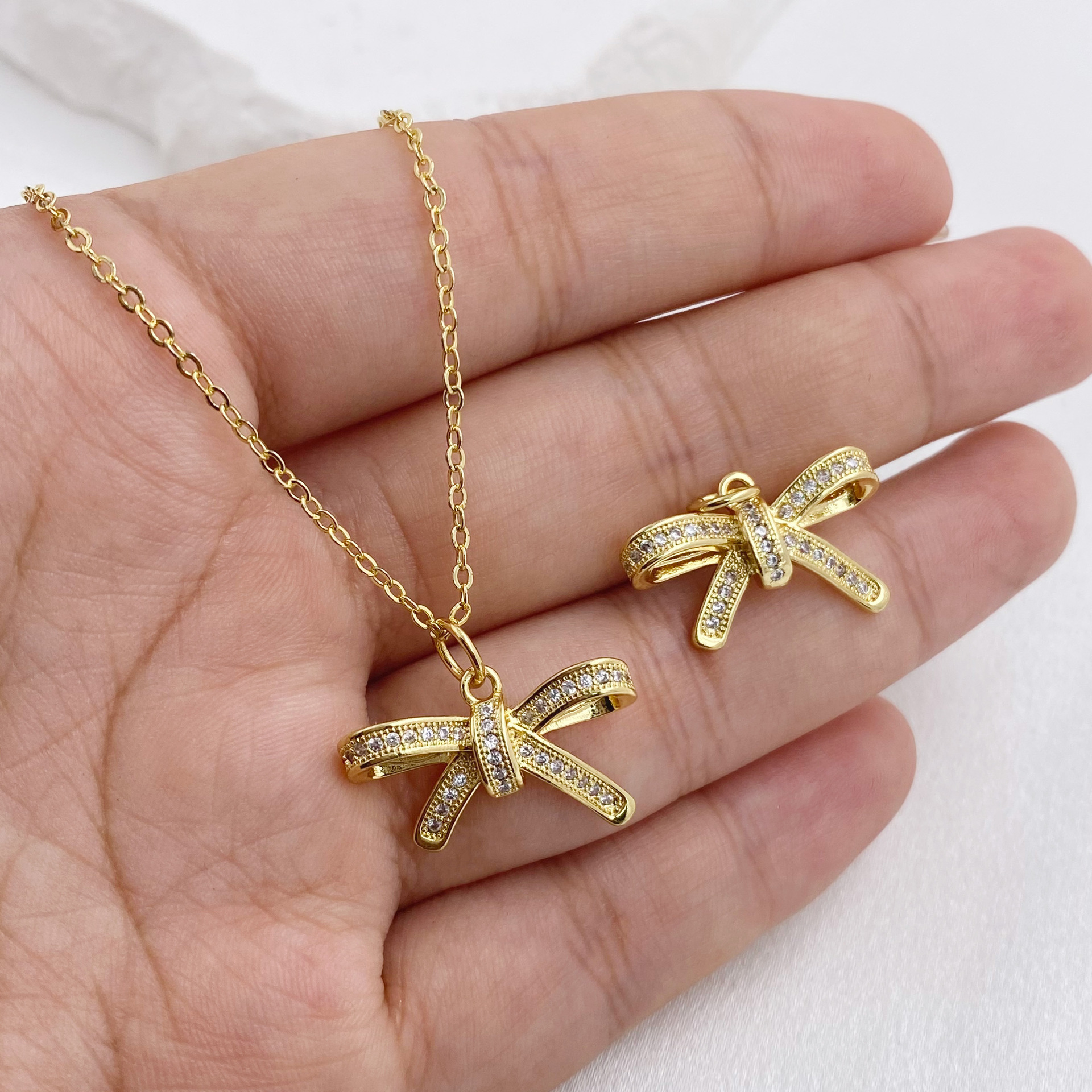 欧美跨境设计感蝴蝶结大气简约耳钉吊坠戒指女式套装 English | 投诉
