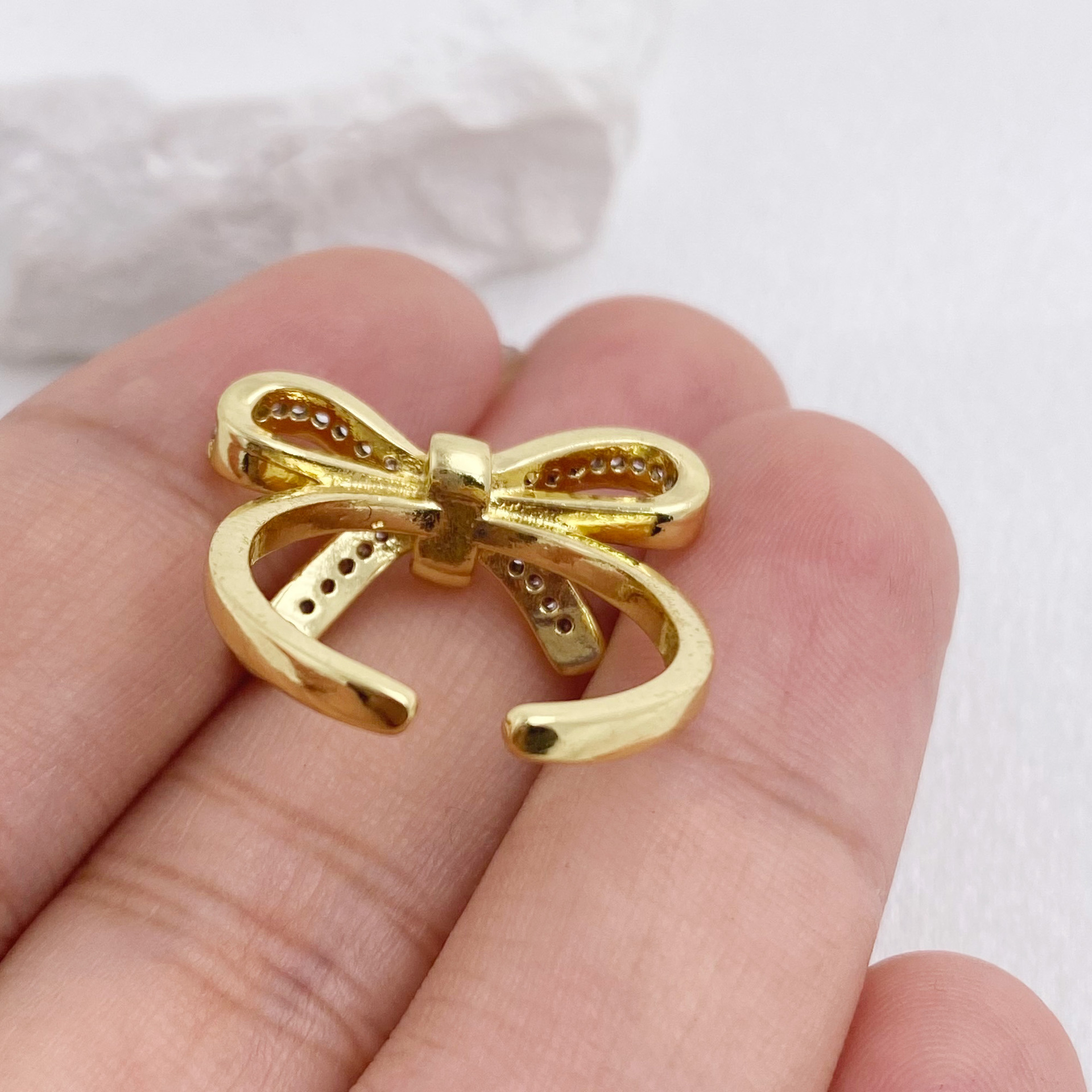 欧美跨境设计感蝴蝶结大气简约耳钉吊坠戒指女式套装