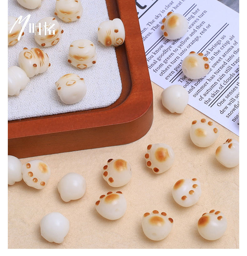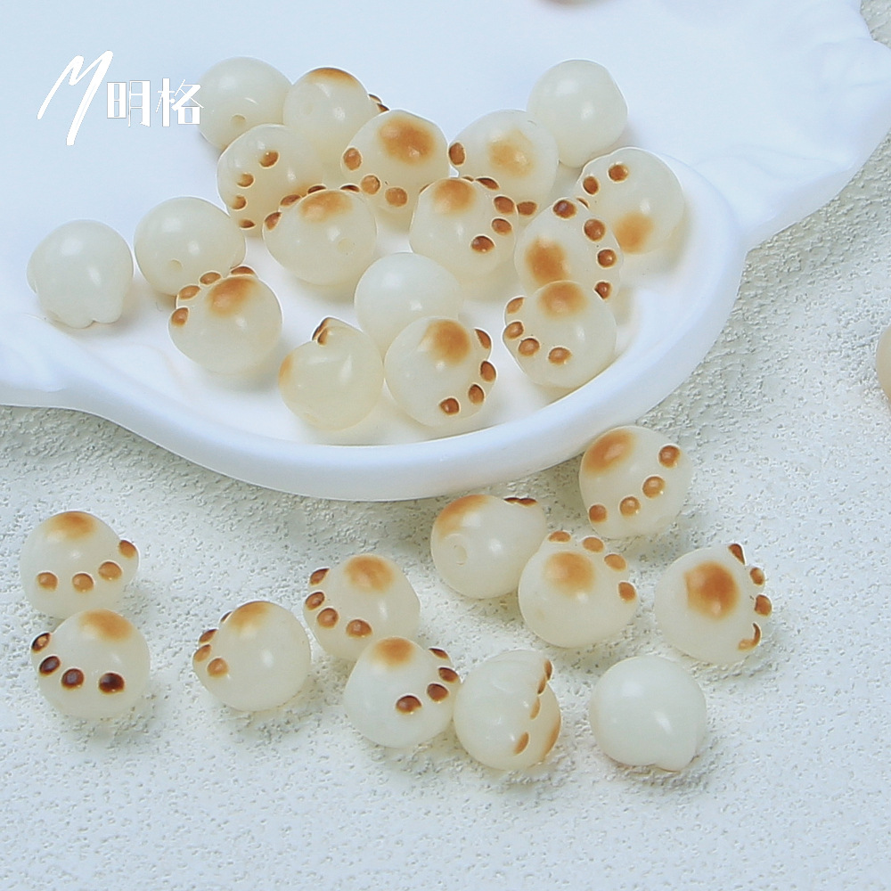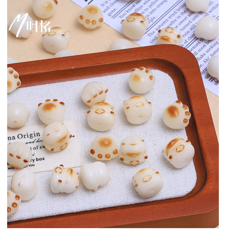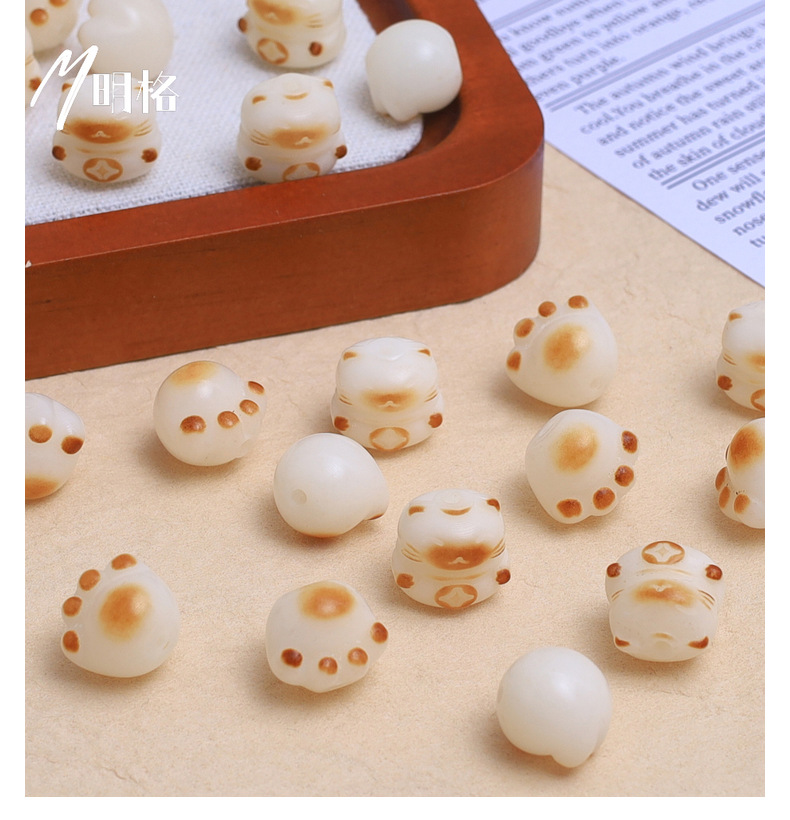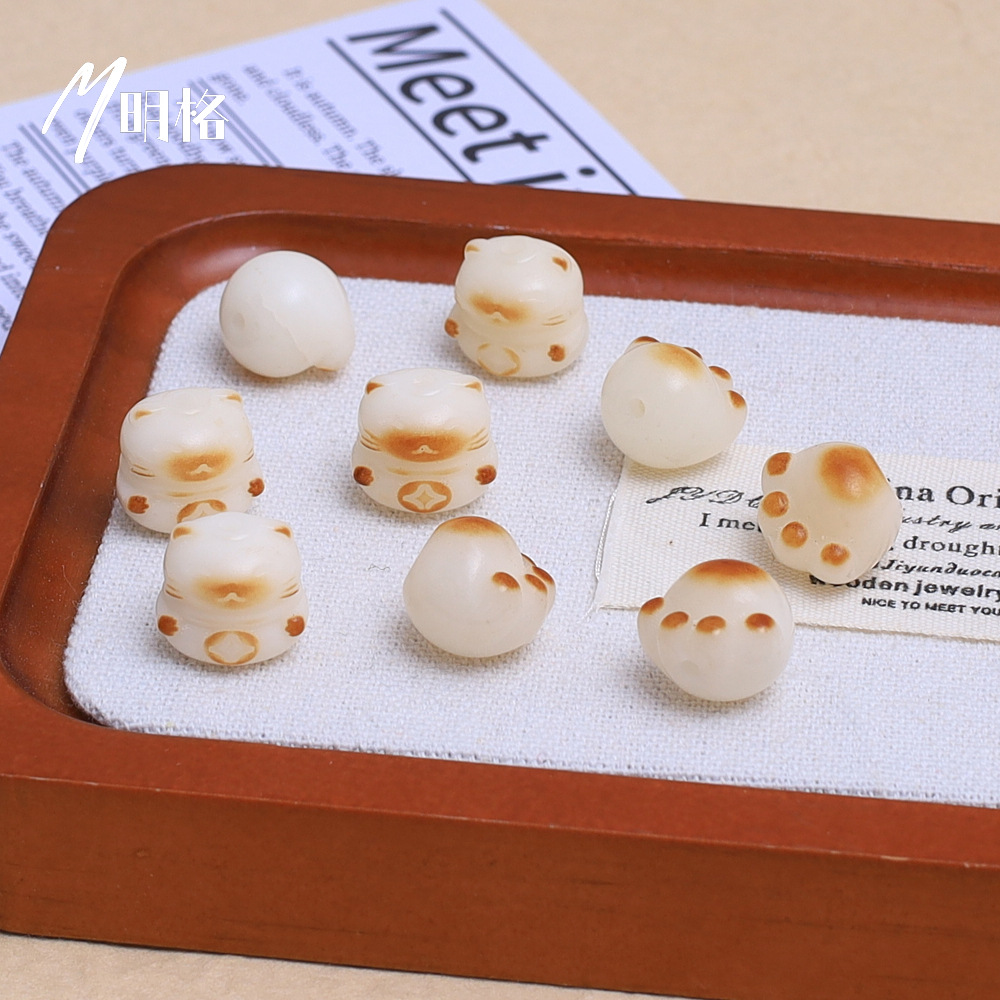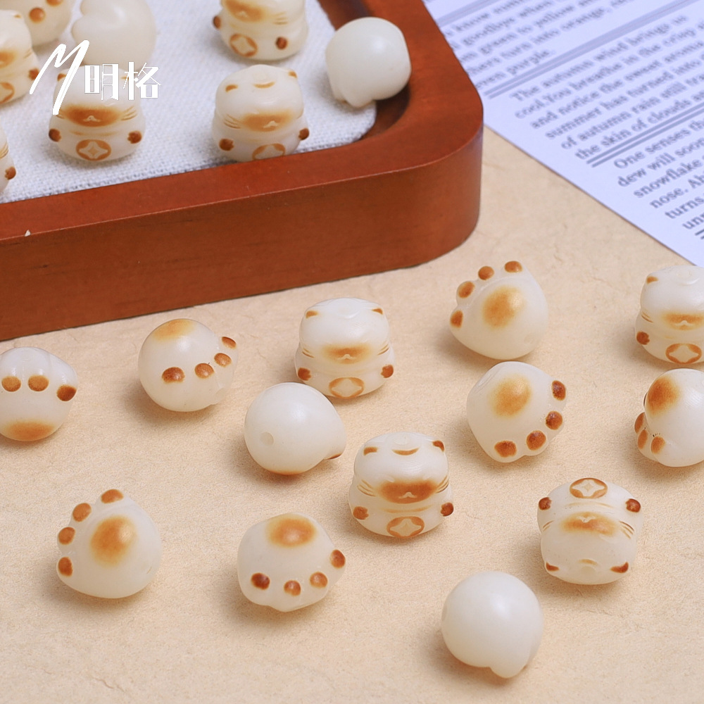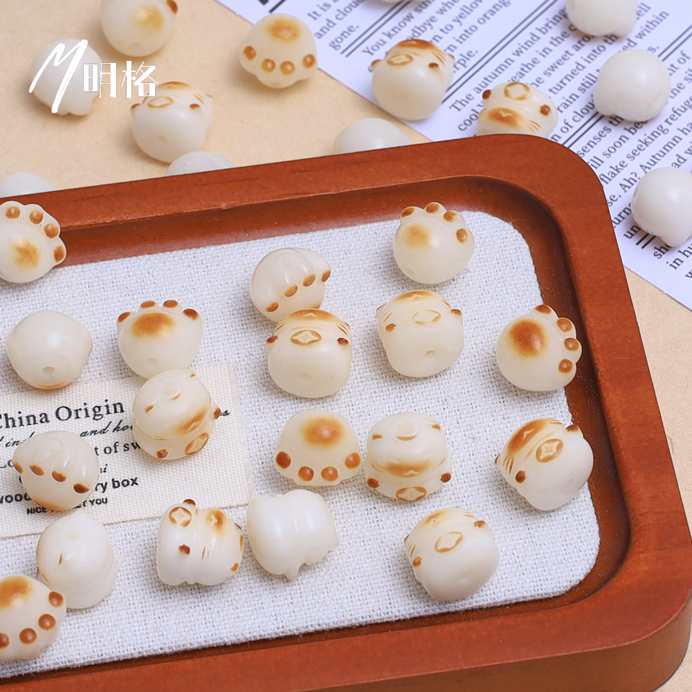 炭烧猫爪白玉菩提根手串散珠子配珠diy串珠文玩配饰可爱猫爪菩提
