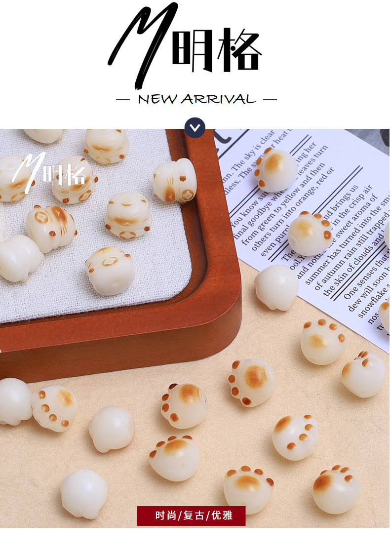 炭烧猫爪白玉菩提根手串散珠子配珠diy串珠文玩配饰可爱猫爪菩提 投诉