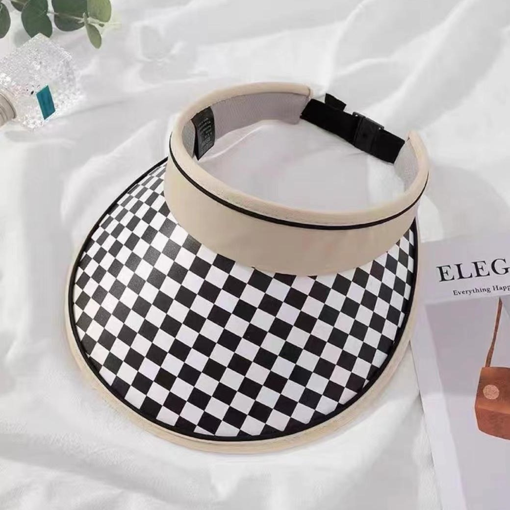 夏季遮阳帽子女棋盘格大帽檐防紫外线防晒帽可调节马赛克太阳帽子