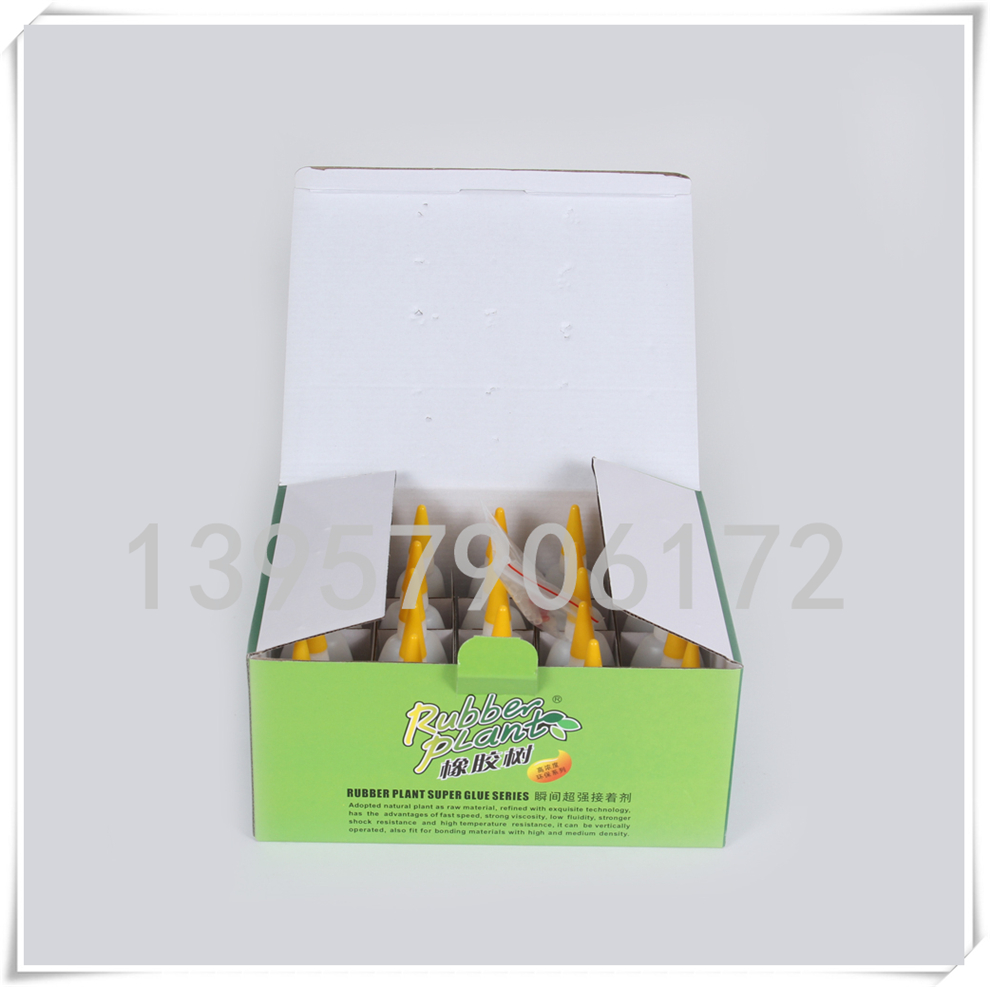 产品名称:彩色纸盒包装 高浓度环保系列瞬间超强接着剂 橡胶树品牌粘合剂