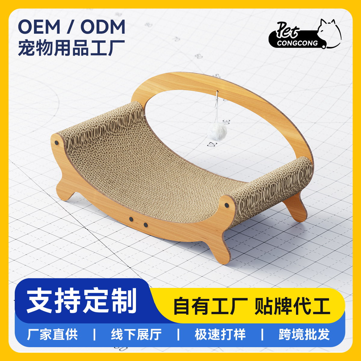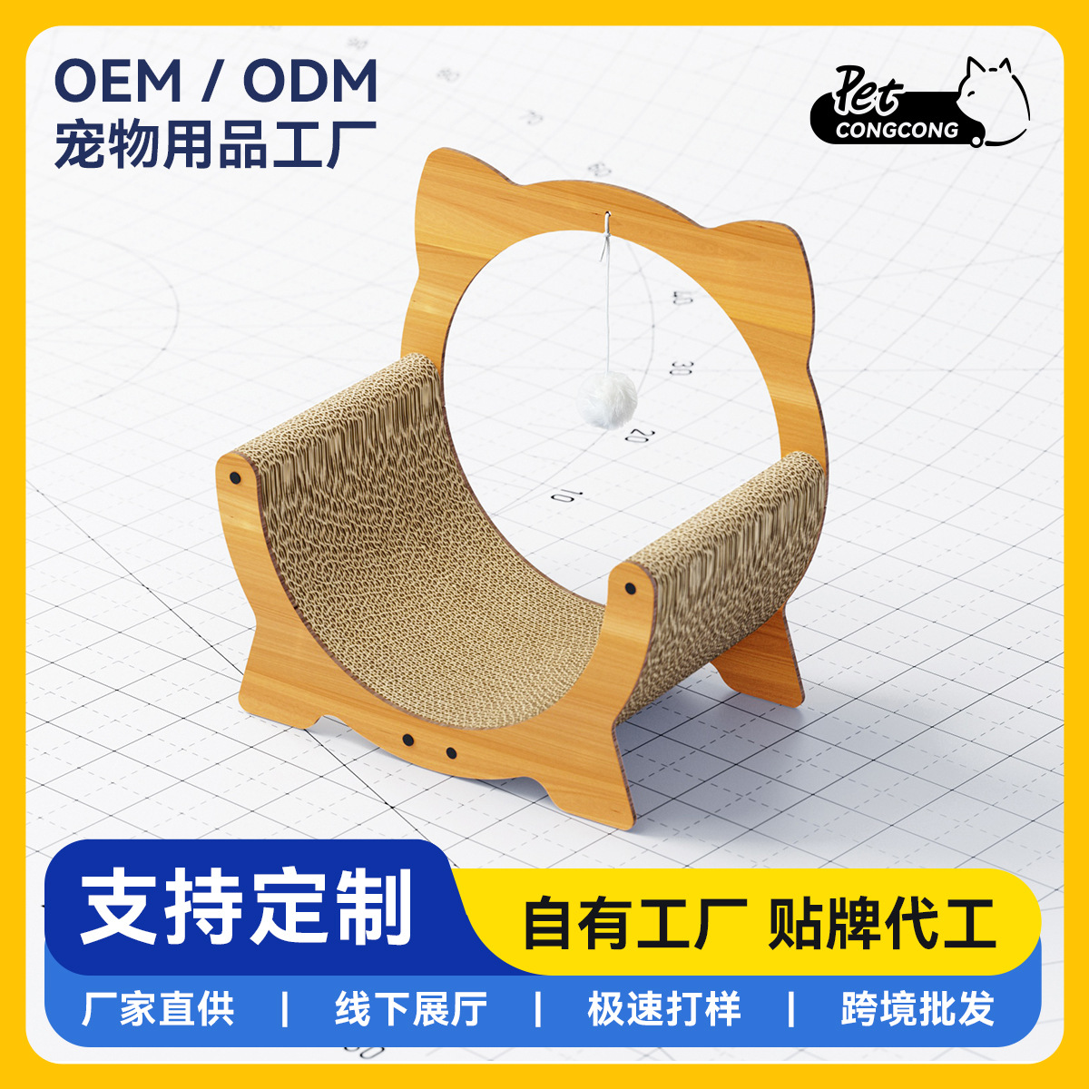 主要销售地区: 日韩,非洲,韩国,日本,欧洲,国内,南美 主要下游平台: 淘宝,京东,ebay,PDD,亚马逊,w 货号: CWC400001 颜色: 实木纹方底圆耳款,实木纹双脚圆耳款,实木 品牌: PETCONGCONG 材质: 密度板 瓦楞纸 箱装数量: 40 风格: 日系 规格: 大货塑封包装,纸箱独立包装,猫抓板替换耗 重量: 2.2 kg/套