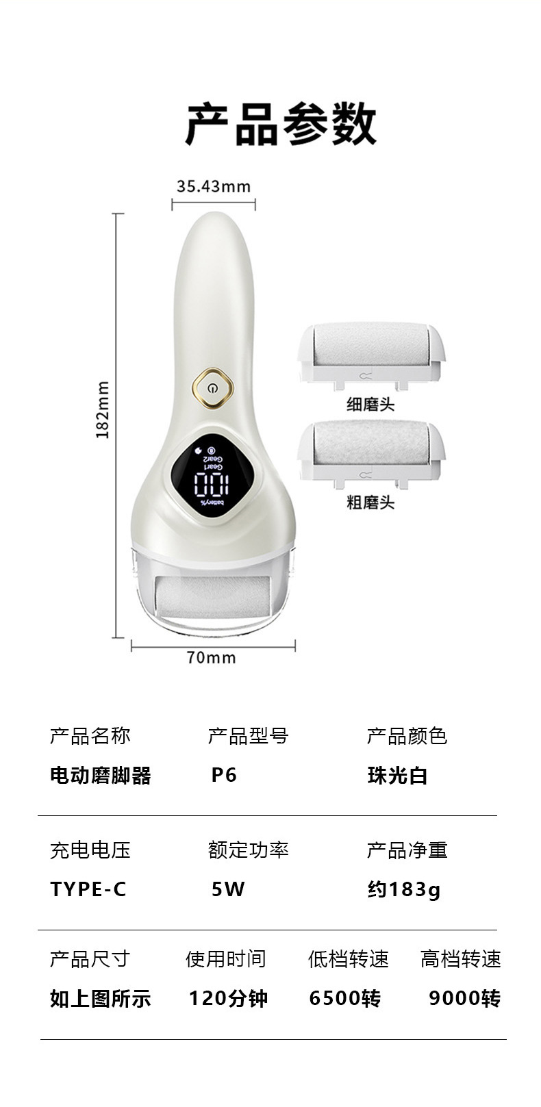品牌: 可贴牌 功能: 光滑美脚修足 货号: P6 上市时间: 2025 产品规格: 珠光白 是否跨境出口专供货源: 否 装箱数: 120pcs 重量: 12kg 重量: 0.015 kg/件