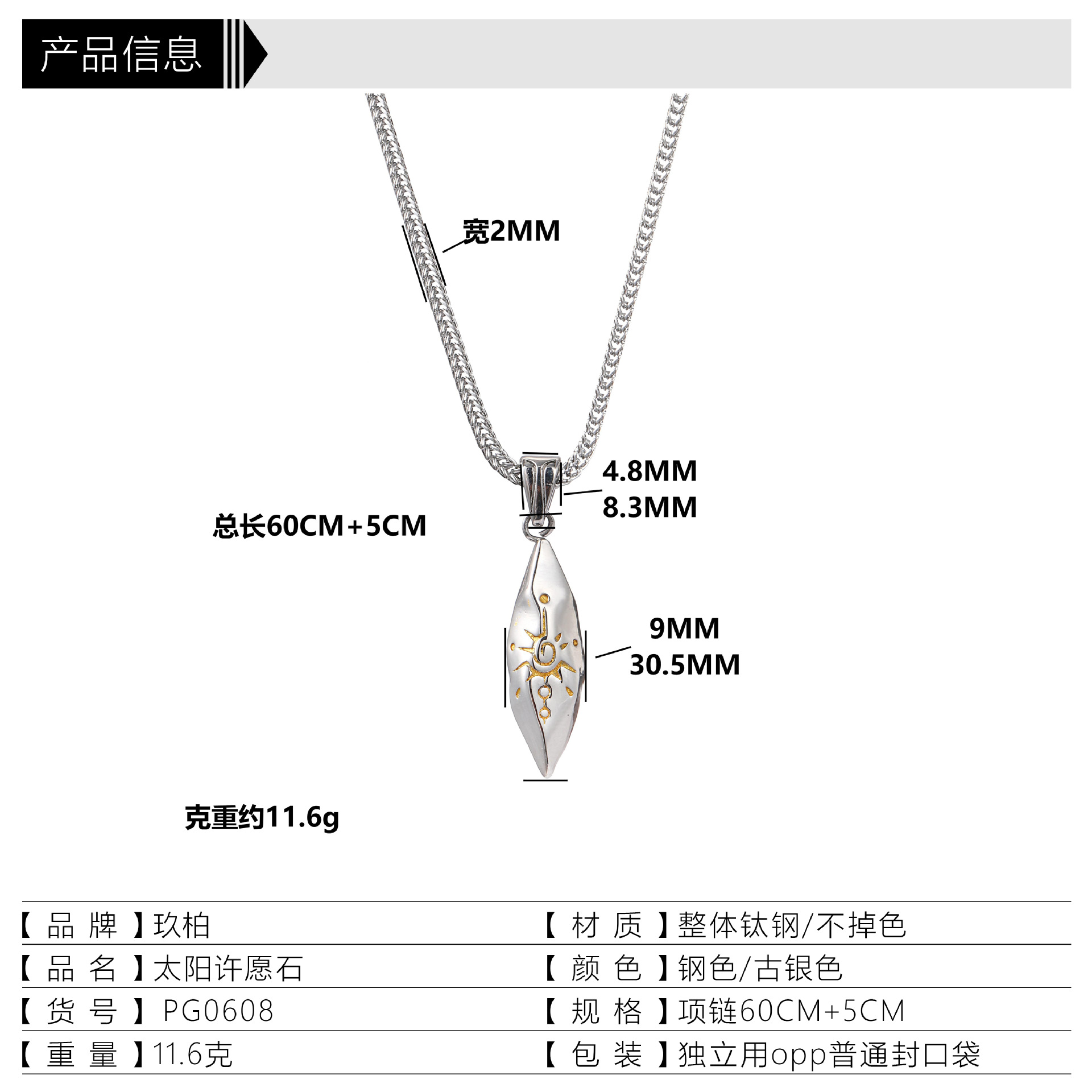 | 钢色单独吊坠没有链子 | ¥1212 | 9863PCS可售 |