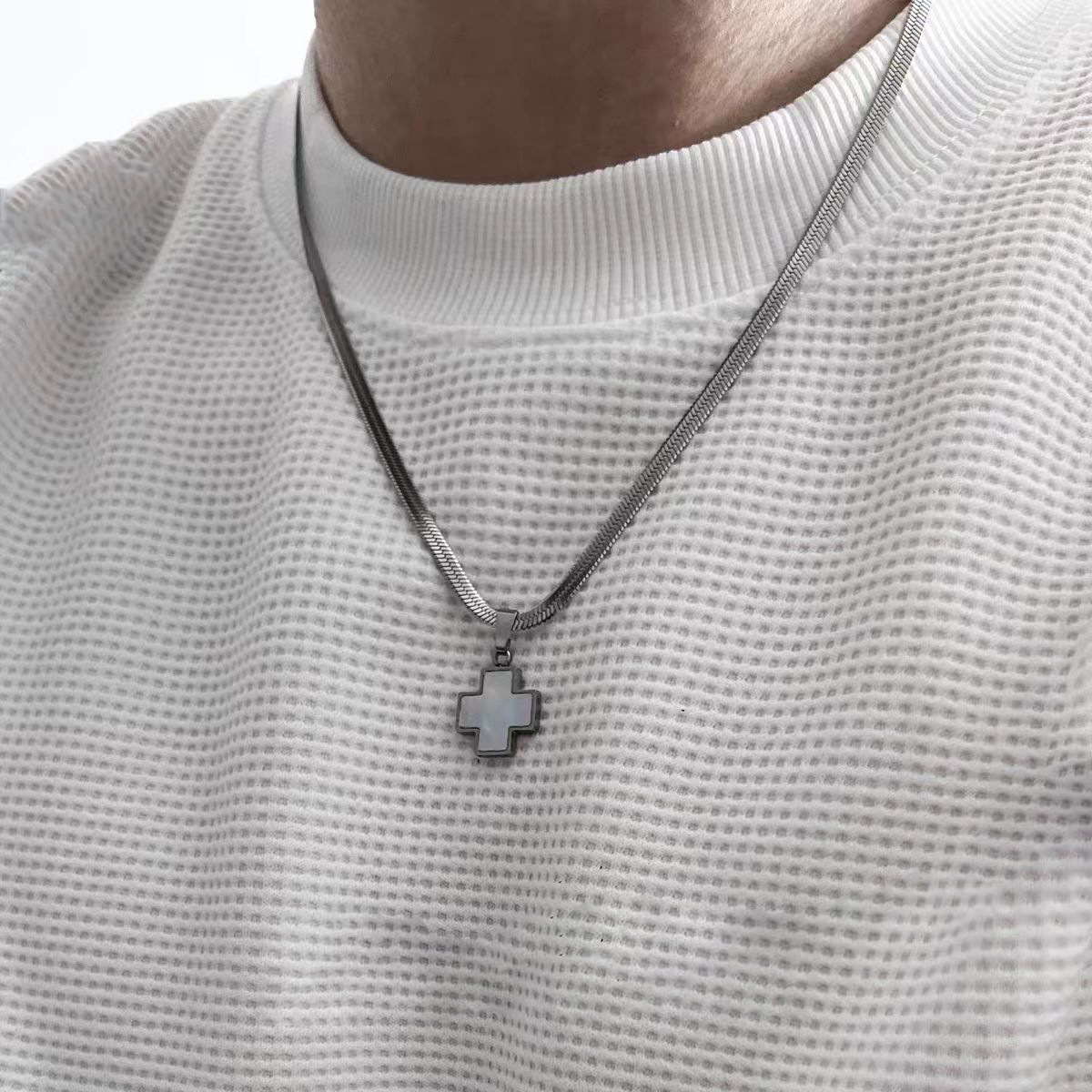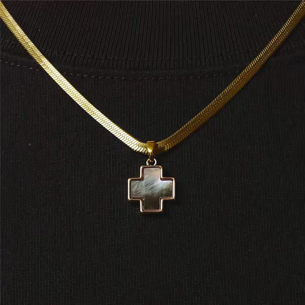 四叶草十字架彩贝母吊坠秋冬男女同款简约小众高级感钛钢毛衣项链 English | 投诉