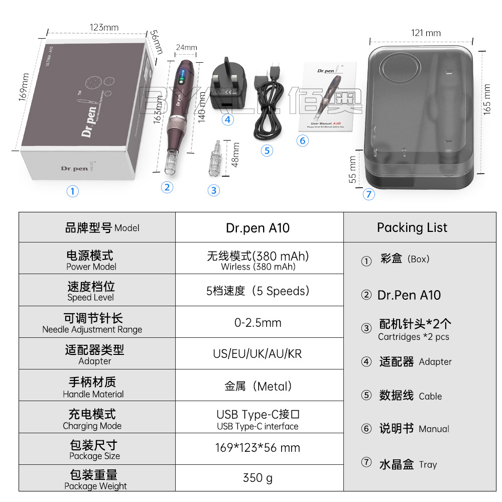 品牌类型: 国货品牌 是否进口: 否 品牌: Dr.pen 产地: 佛山 是否用电: 是 样式: 振动式 功能: 水光针 档位: 5档以上 型号: A10 适用场景: 家用
