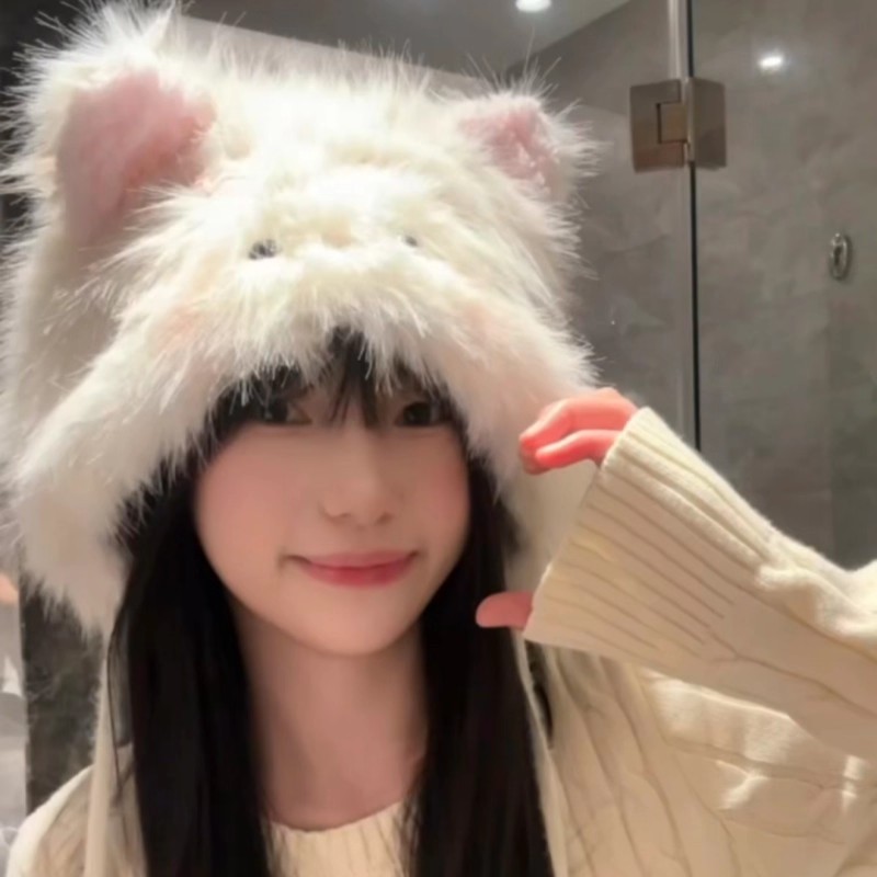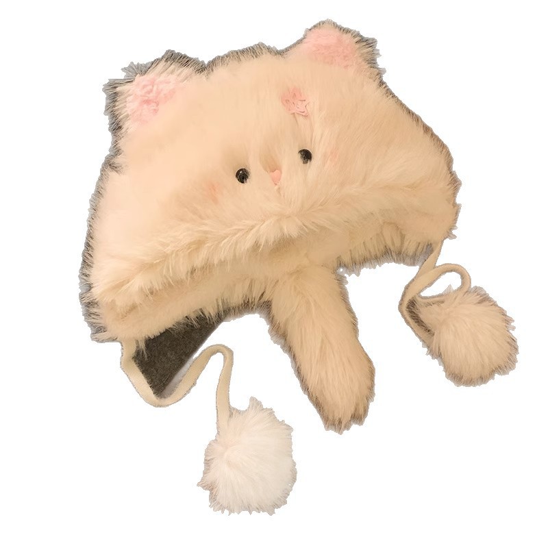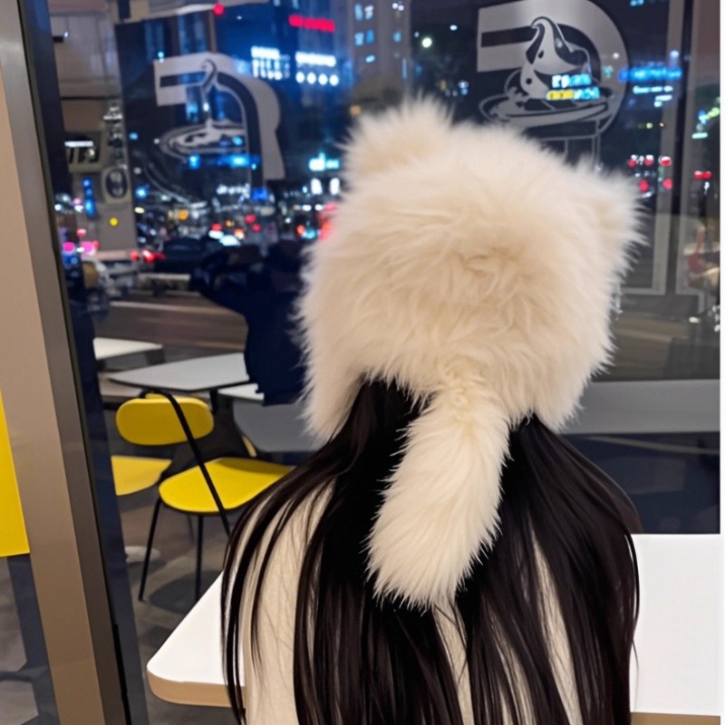 秋冬小猫尾巴可爱帽子猫咪冬季护耳毛绒帽保暖帽出游拍照雷锋帽女