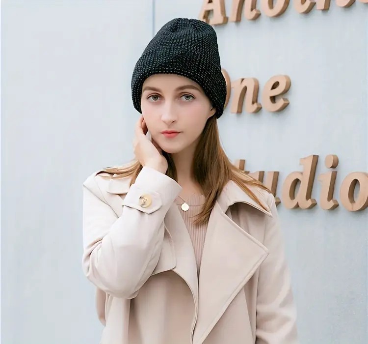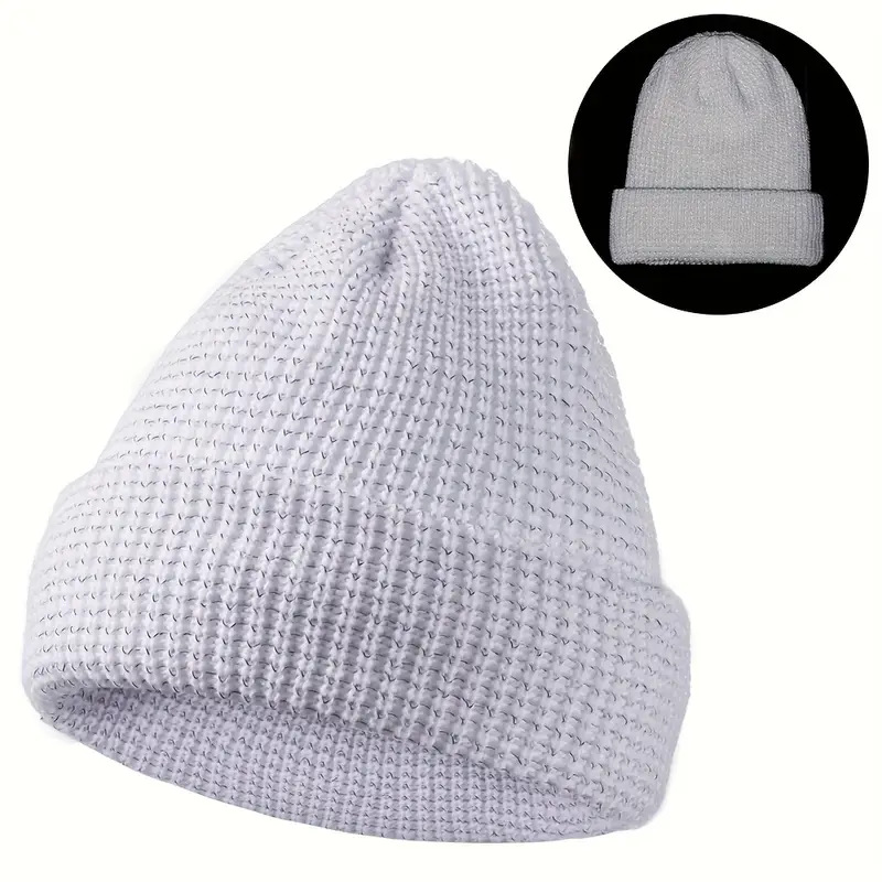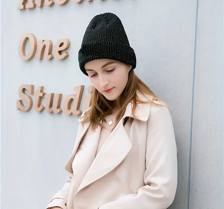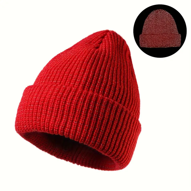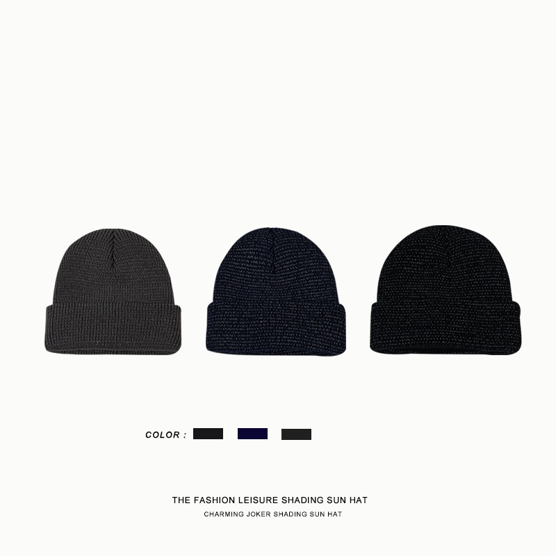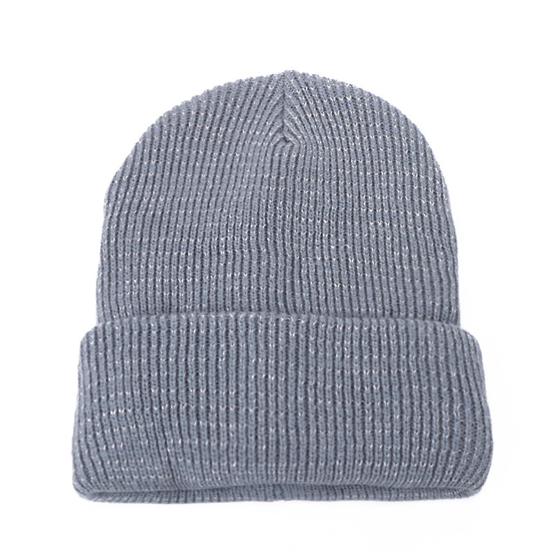 炫酷反光针织帽 夜间户外运动跑步毛线帽 秋冬季加绒保暖防寒帽子