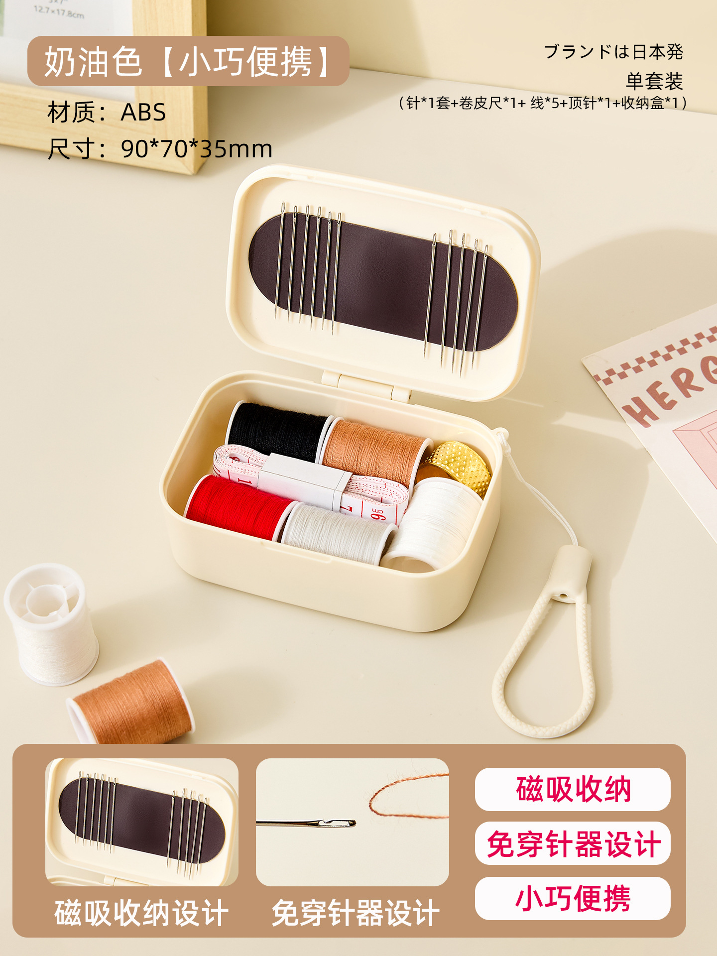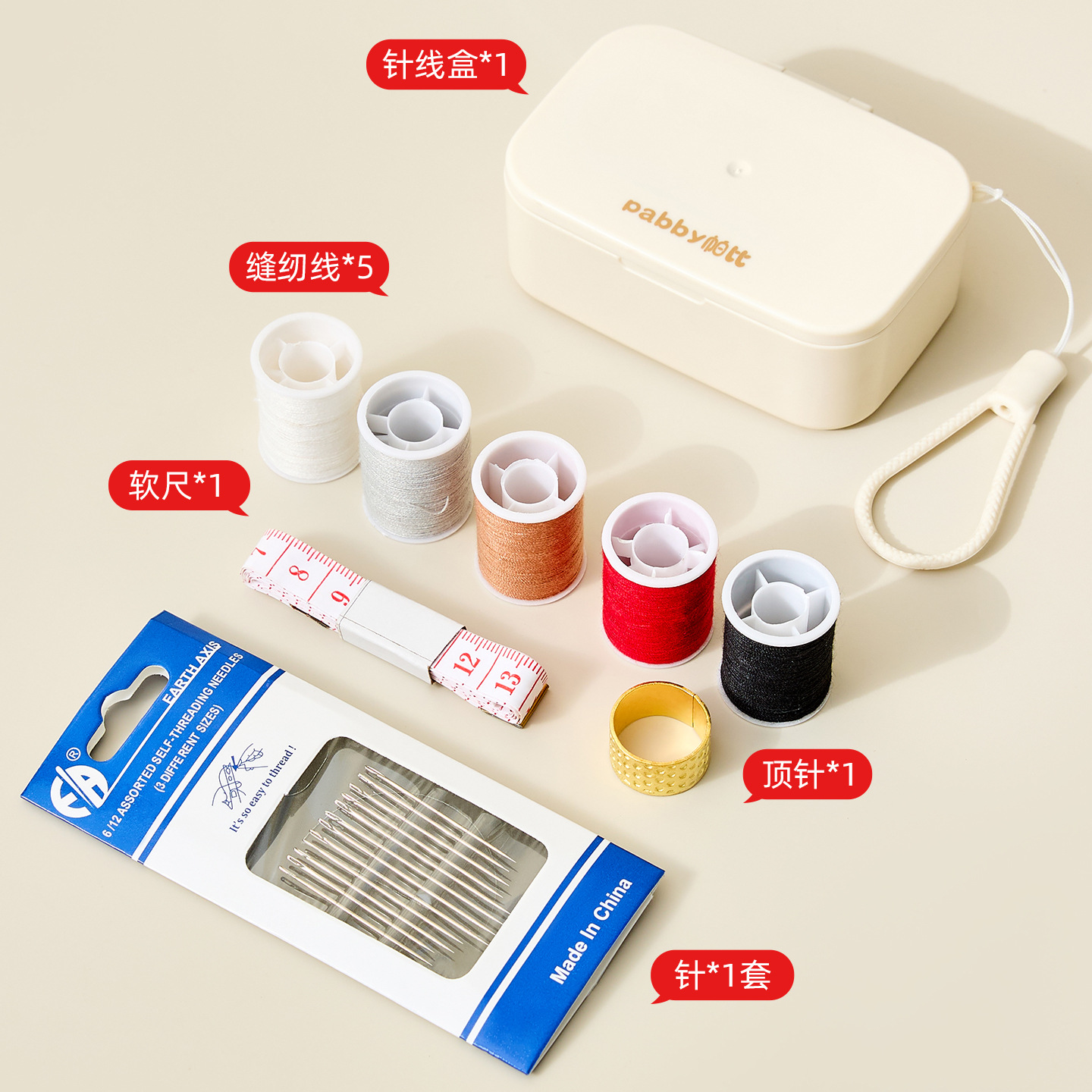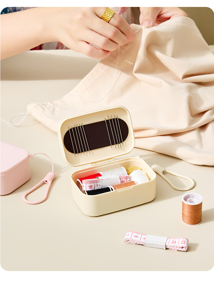 名称:便携针线盒 奶油色 粉色