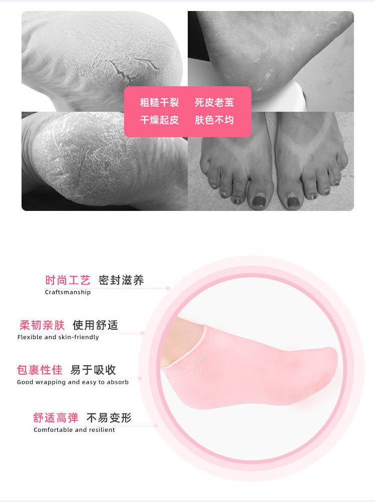 硅胶防护足套护理防水防裂软化老茧角质脚套脚膜沙滩袜柔软保护套 English | 投诉