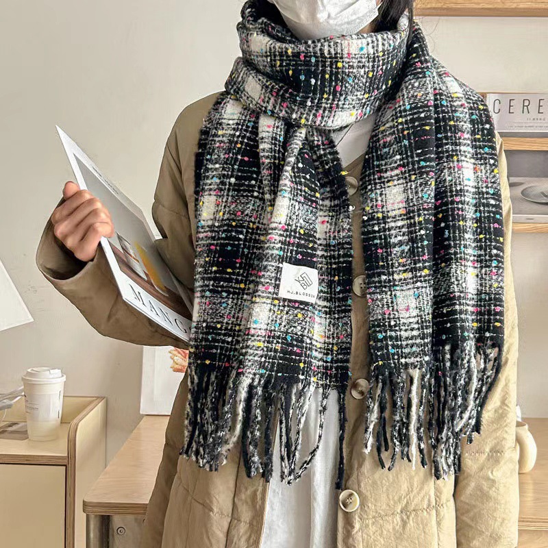 彩虹糖豆围巾秋冬季女韩系氛围感围巾2024新款秋冬ins学生围脖
