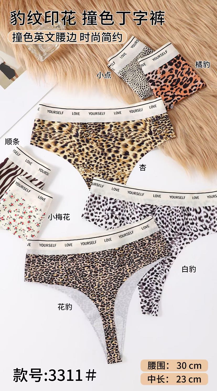 性感冰丝无痕豹纹不夹臀女士内裤三角裤丁字裤撞色 投诉