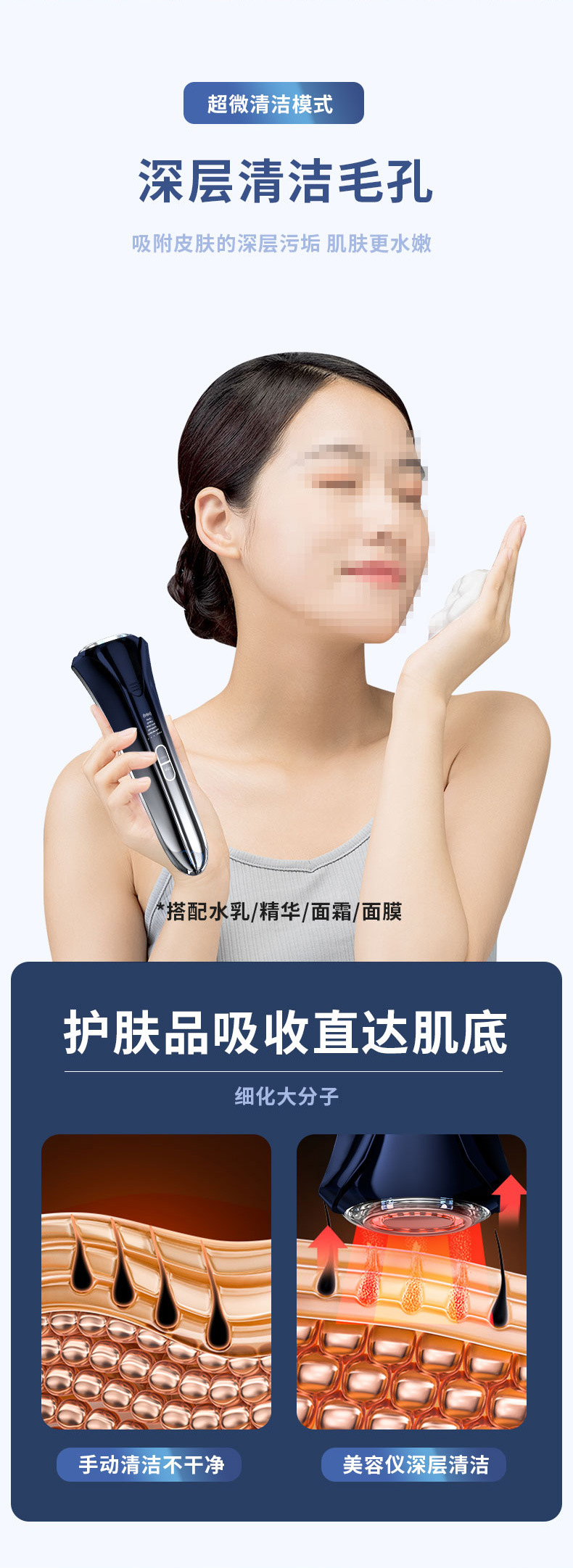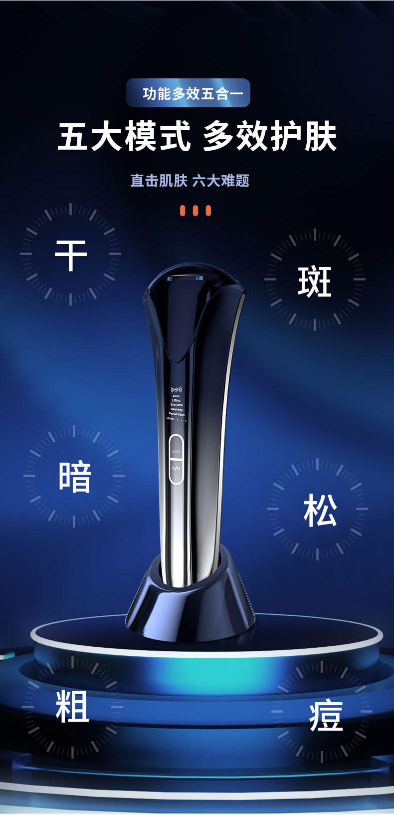 OEM定制新款美容仪器EMS微电流正负离子导入红蓝光子嫩肤美容仪