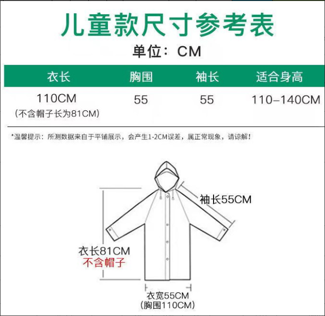 | 儿童加厚雨衣宽口白1件 | ¥330 | 5000个可售 |