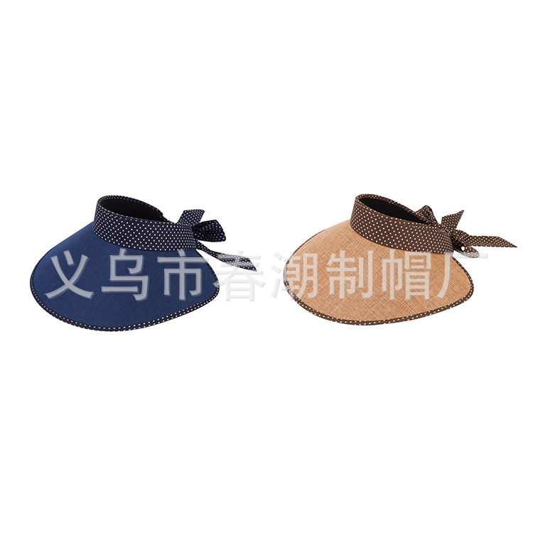 夏季 女士飘带蝴蝶结麻料宽檐空顶帽 可定制遮阳帽