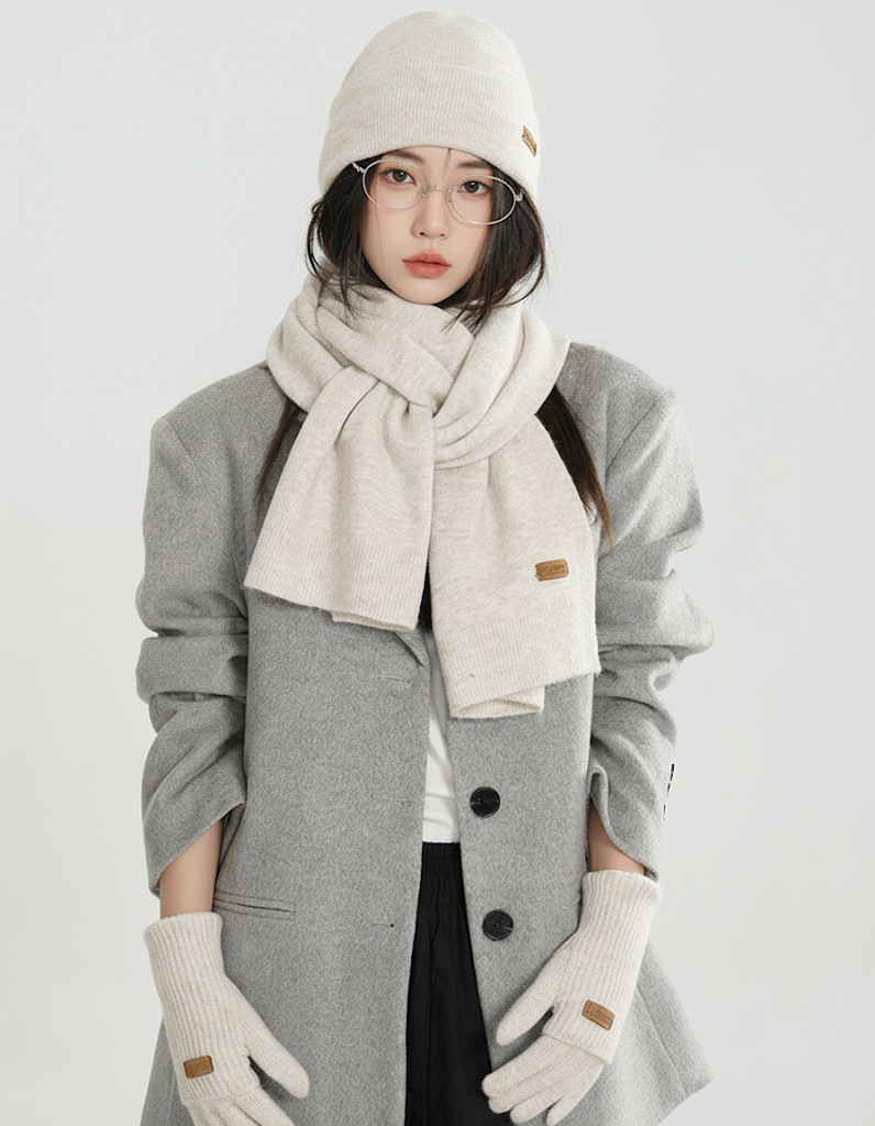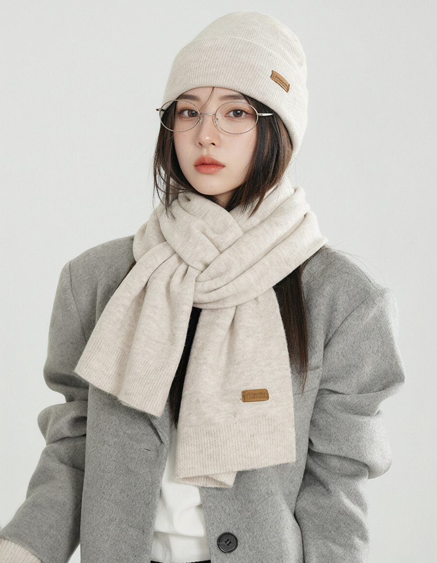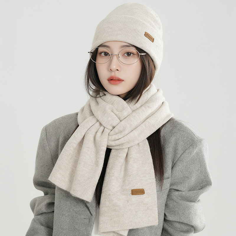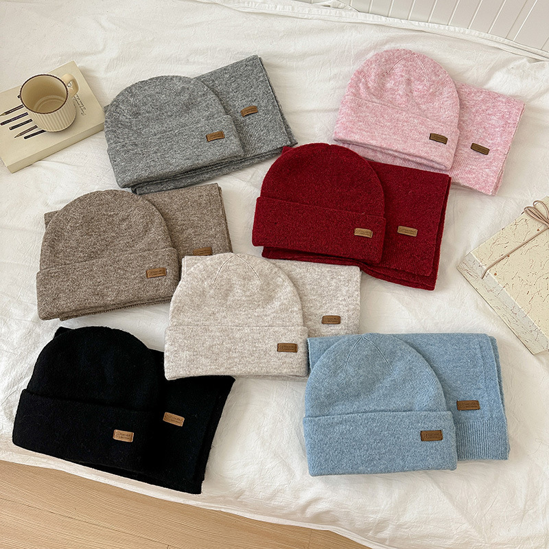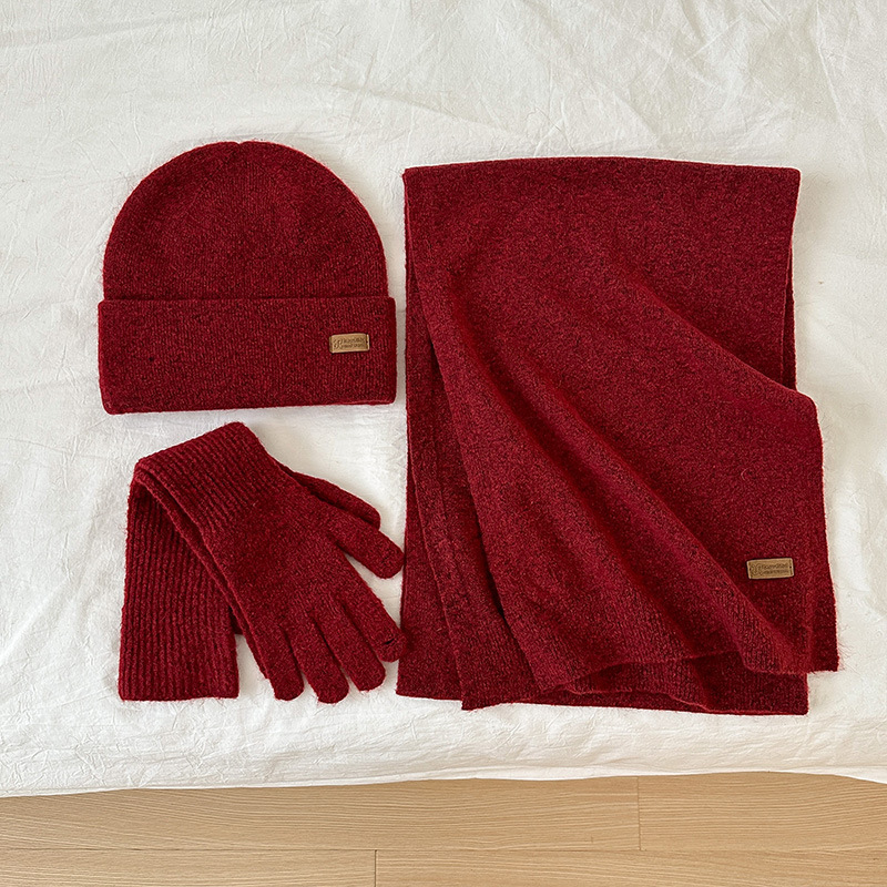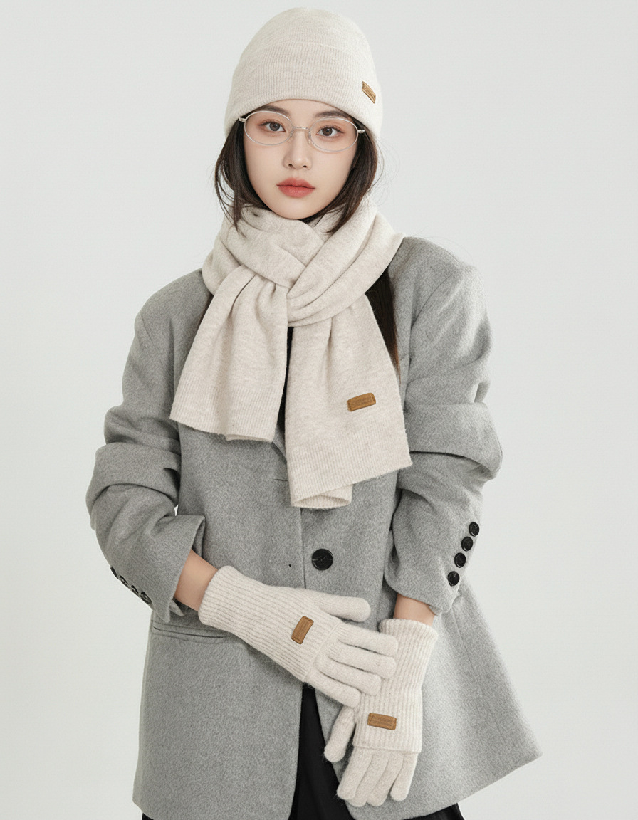 纯色针织围巾女冬季2025新款韩版百搭加厚保暖帽子手套围脖三件套