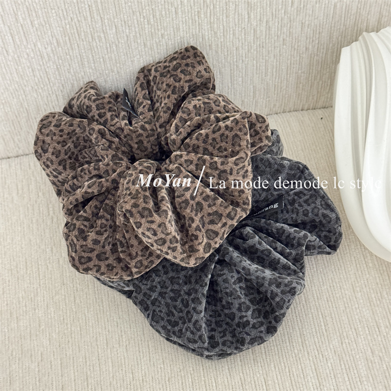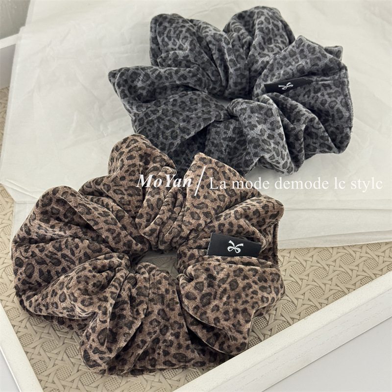 简约复古豹纹丝绒大肠发圈韩版马尾扎头绳气质百搭发绳新款绑头花