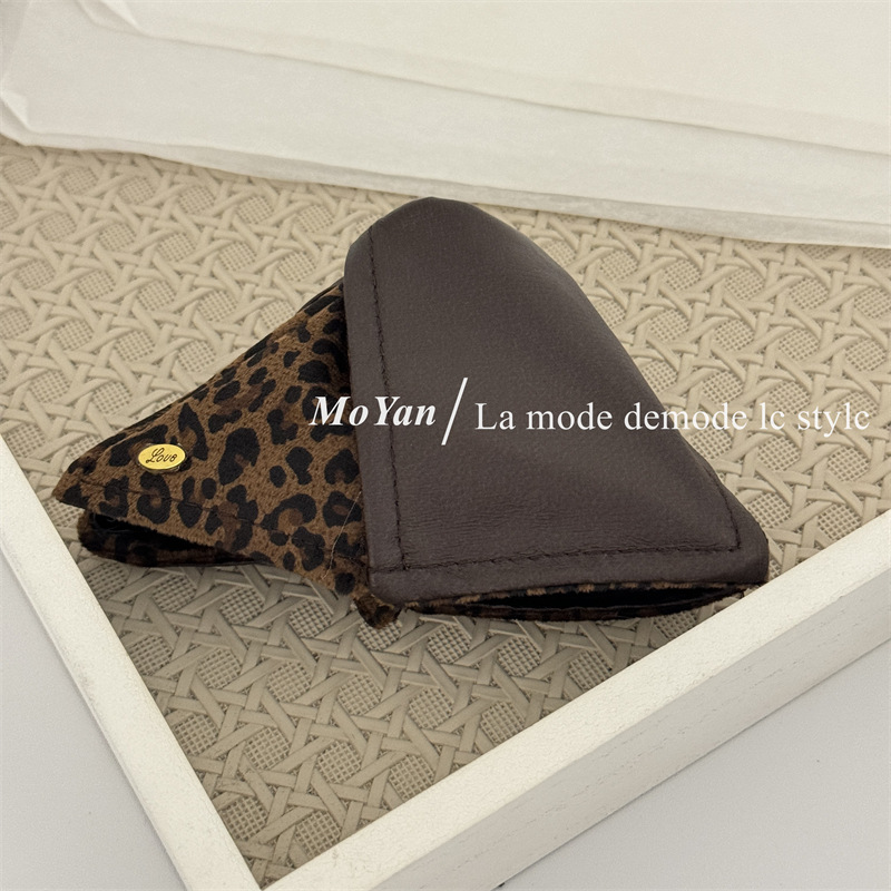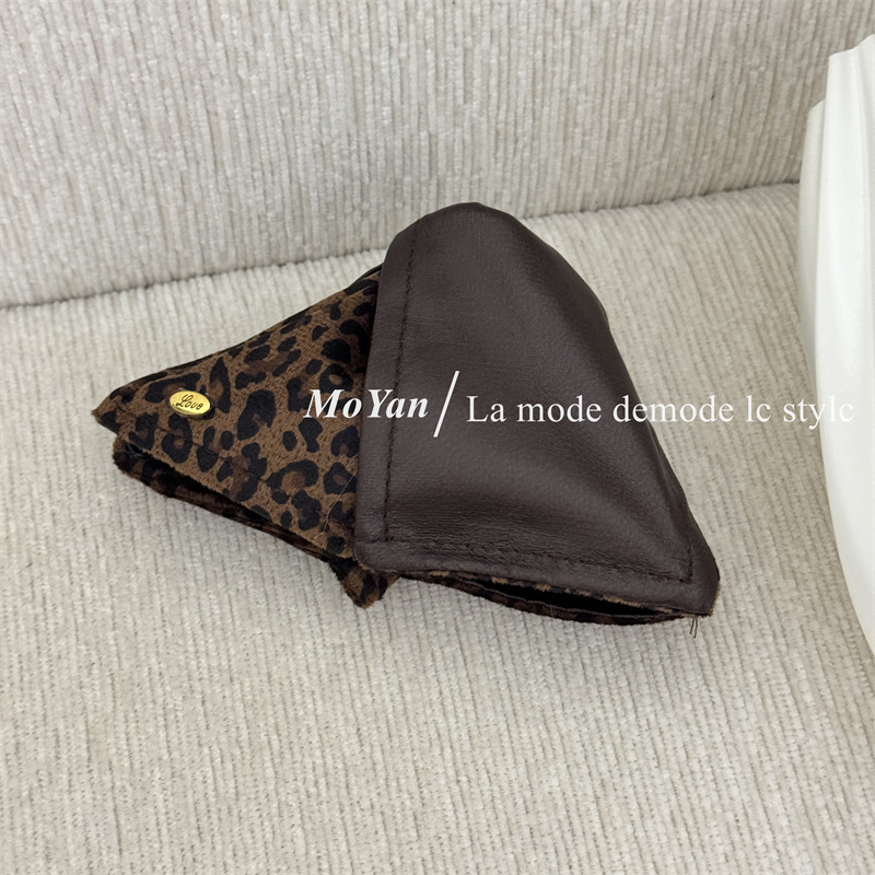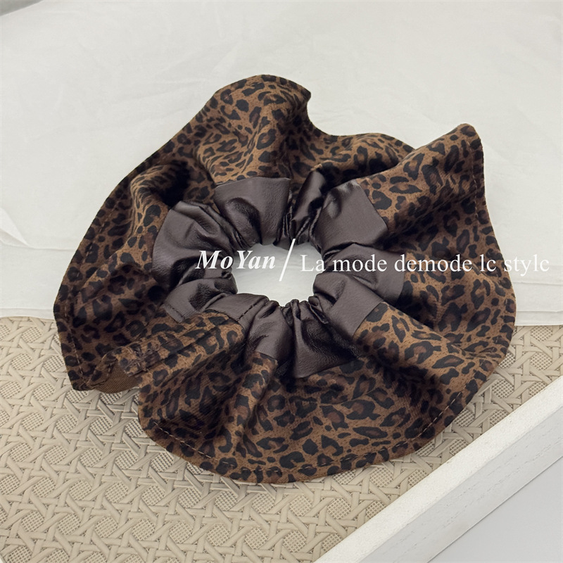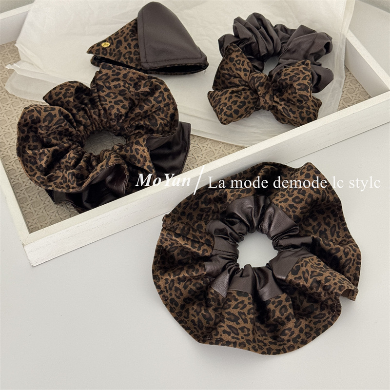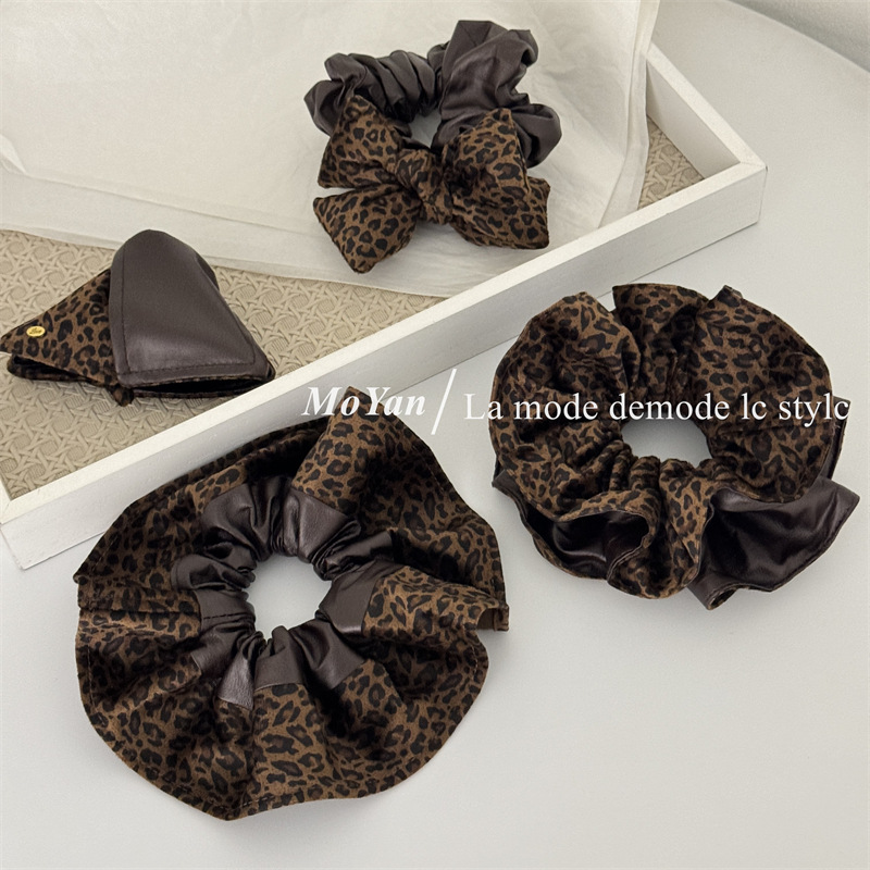 高级感复古麂皮绒豹纹PU拼接大肠发圈女韩系百搭慵懒风头绳女抓夹