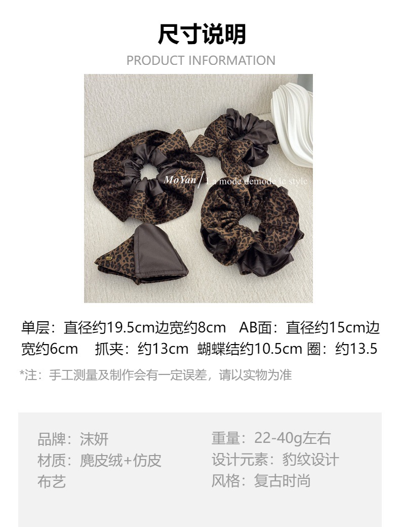 高级感复古麂皮绒豹纹PU拼接大肠发圈女韩系百搭慵懒风头绳女抓夹 投诉