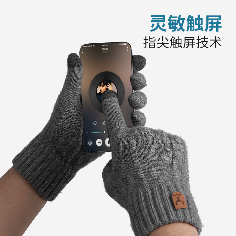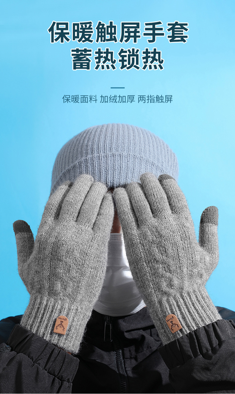 触屏手套男士冬天骑行开车防滑加绒毛线防寒手套冬季毛线保暖手套 English | 投诉