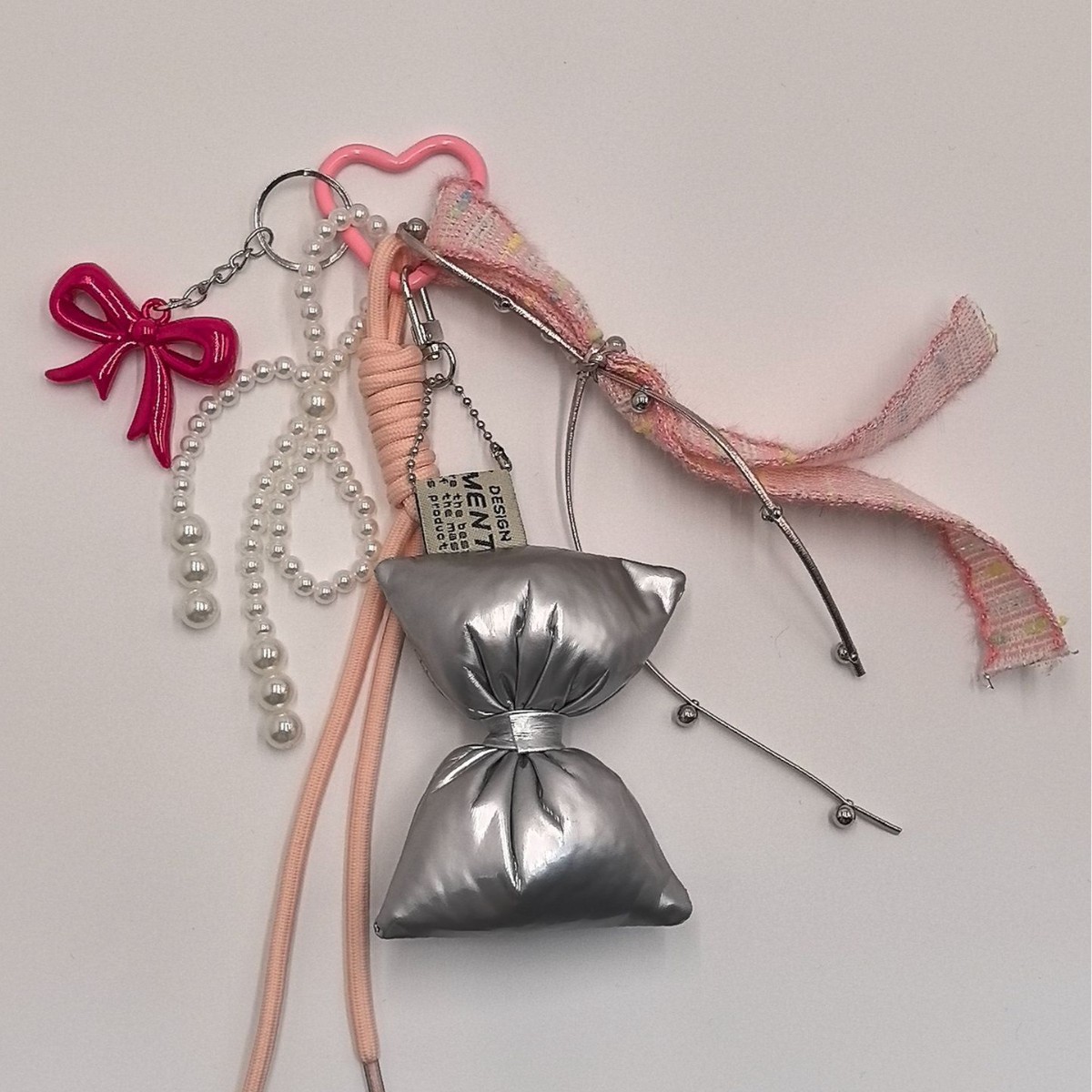 新款蝴蝶结爱心时尚手机挂件创意百搭尼龙编织绳钥匙扣挂饰