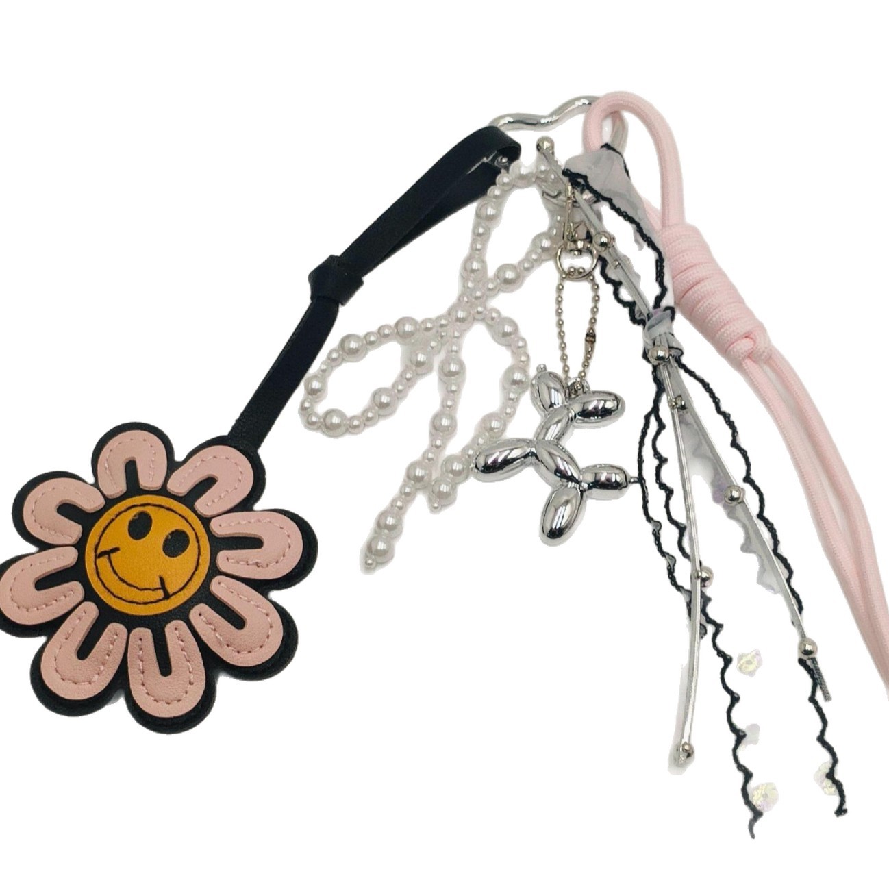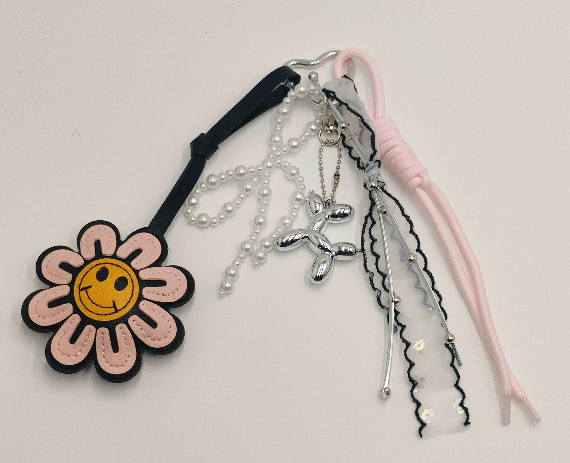 卡通皮革笑脸太阳花挂饰pu皮挂件包包装饰车载吊坠包包钥匙扣饰品