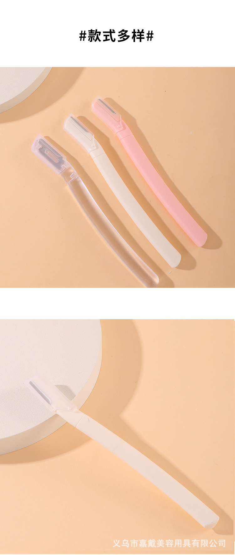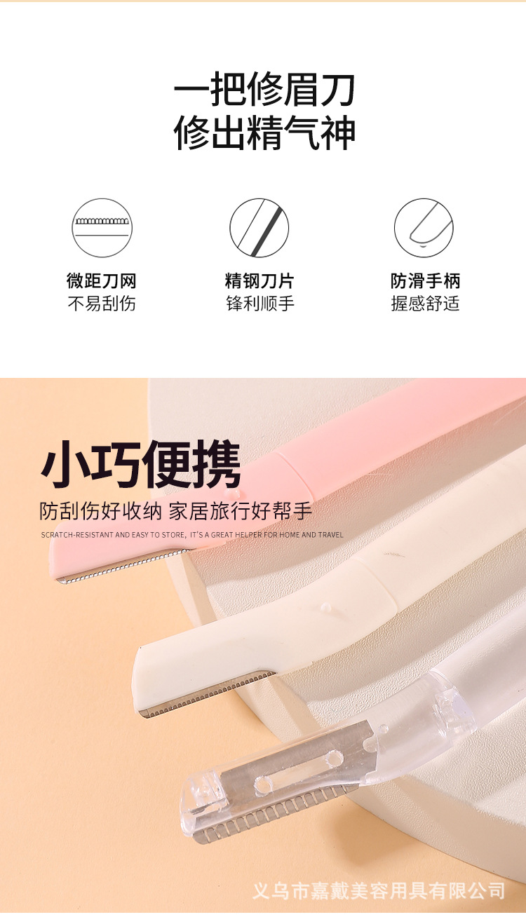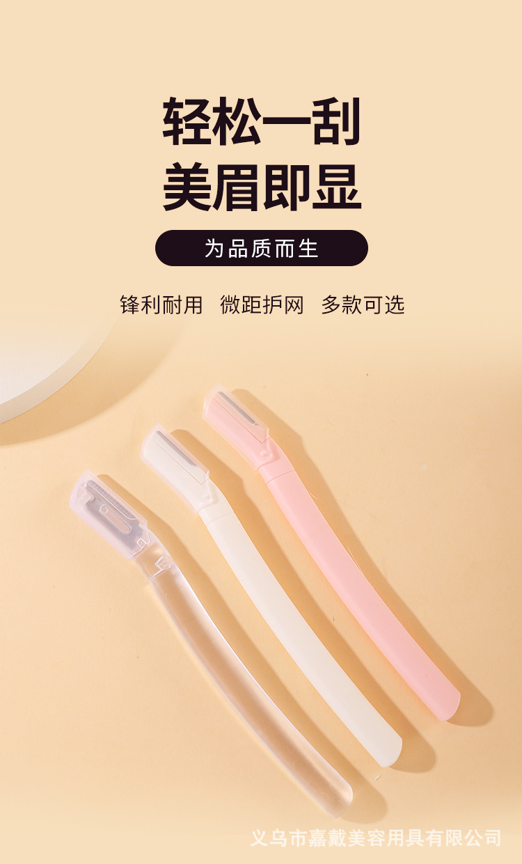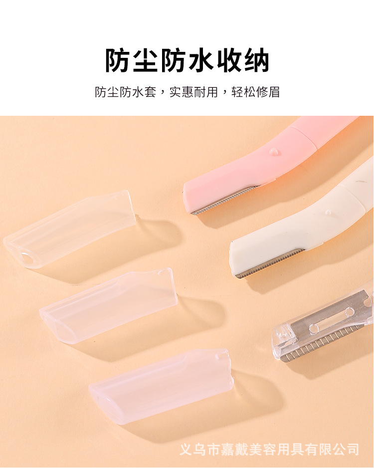 品牌: 嘉戴 是否进口: 否 颜色分类: 透明色,白色,粉色 产地: 义乌 货号: 8712 美妆工具分类: 修眉刀 是否跨境出口专供货源: 否 适用人群: 普通人群 尺寸: 见详情 材质: 不锈钢+透苯 重量: 0.004 kg/个