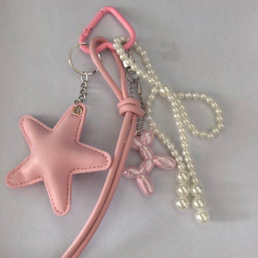 新miu风包包挂饰汽车钥匙扣彩色皮革五角星挂件伴手礼手工diy挂绳