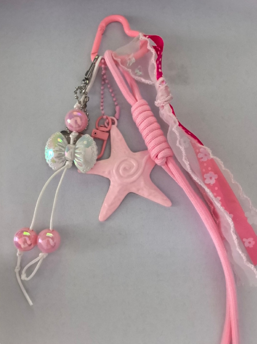 miu系充棉爱心铆钉编绳包包挂件 韩系新款精致车钥匙扣车挂五角星