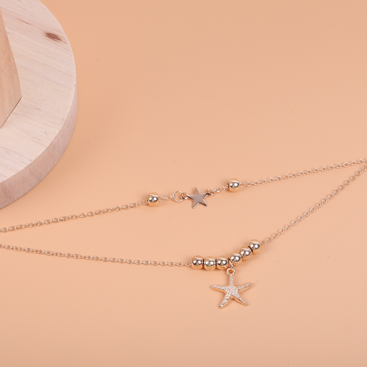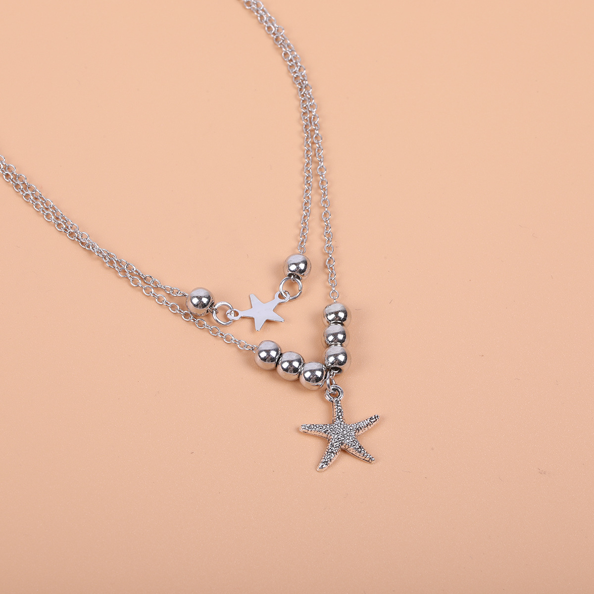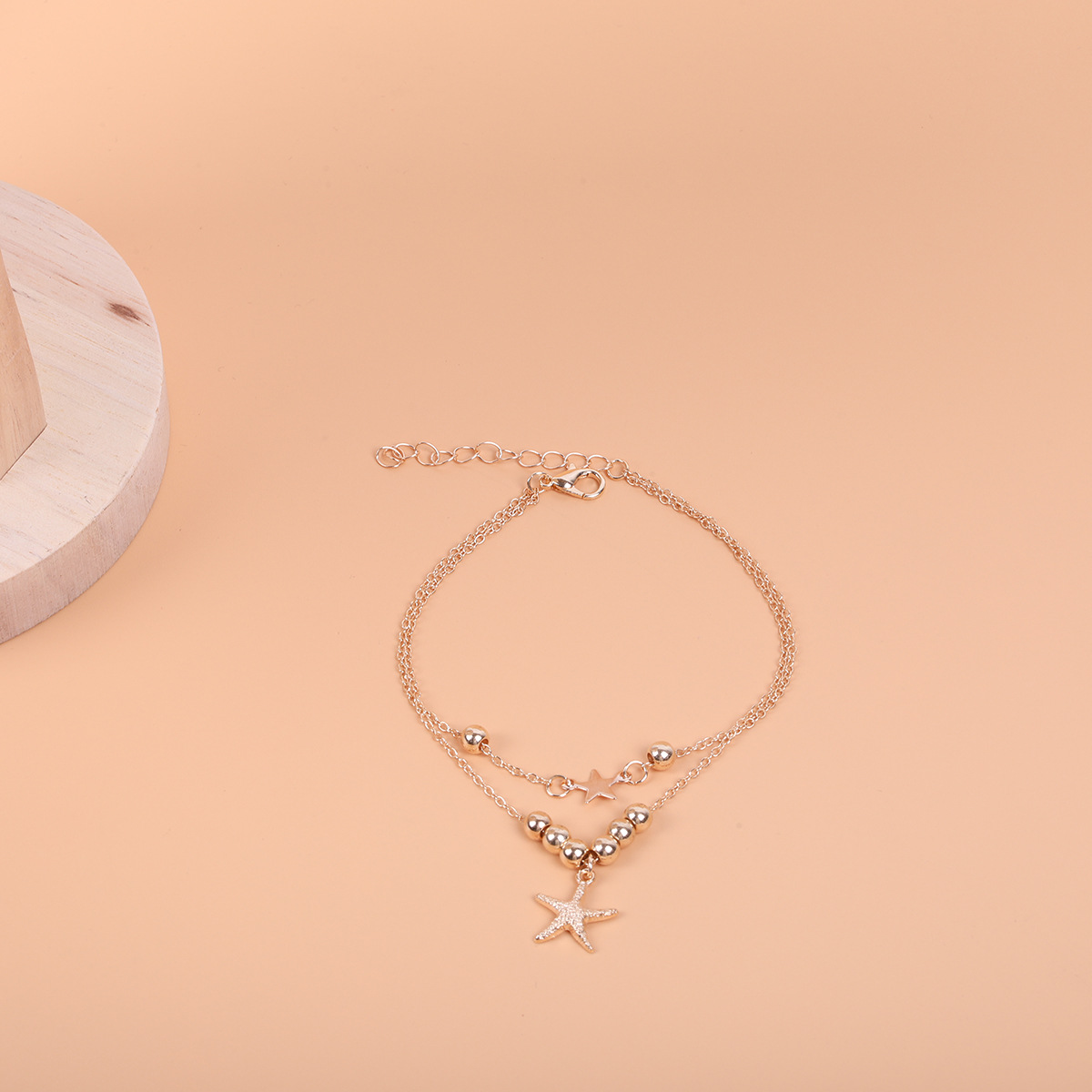 跨境时尚简约金属沙滩海洋风脚链多层串珠海星五角星脚饰品女式