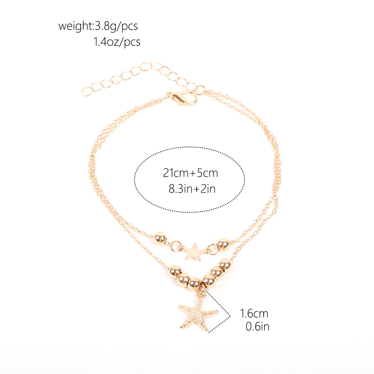 跨境时尚简约金属沙滩海洋风脚链多层串珠海星五角星脚饰品女式 投诉