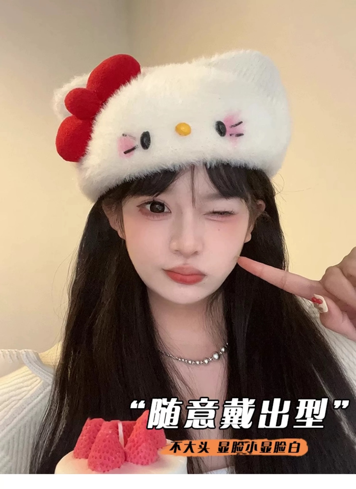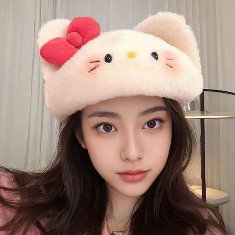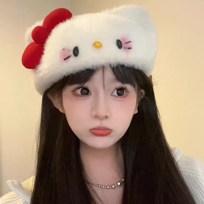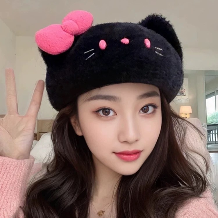 针织毛绒kt贝雷帽甜美可爱冬季加厚保暖防风百搭画家帽软妹高颜值