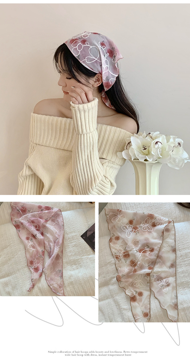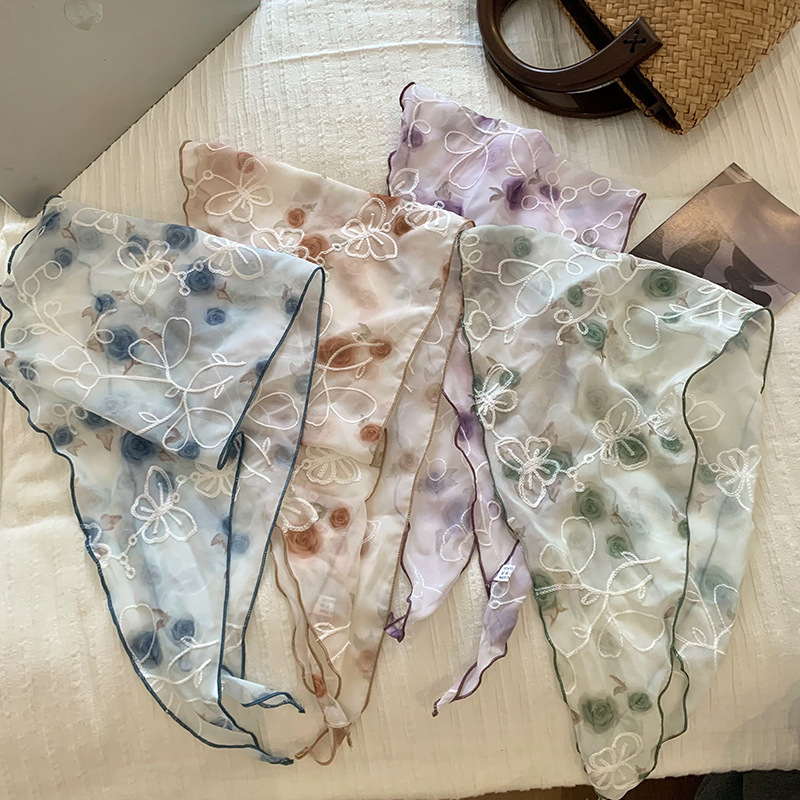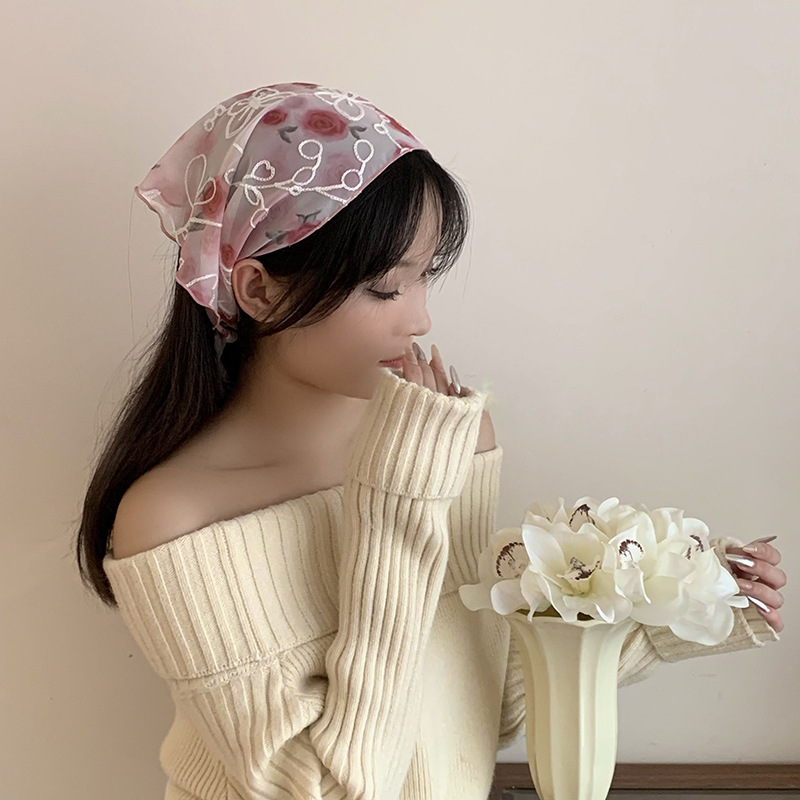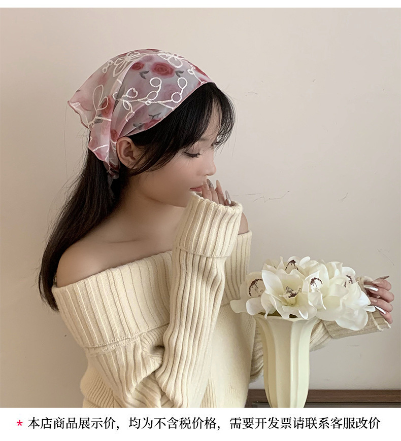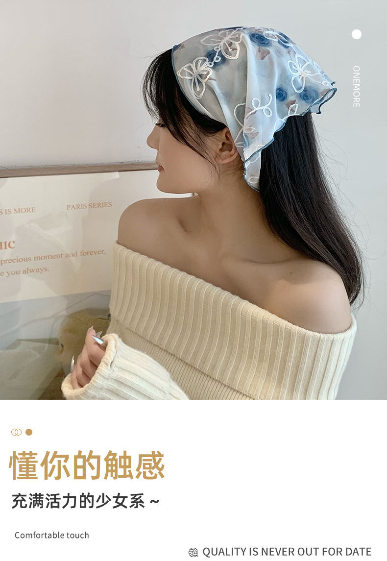 包头巾夏女田园春夏款法式刺绣蕾丝三角巾围脖女领巾百搭丝巾批发 English | 投诉