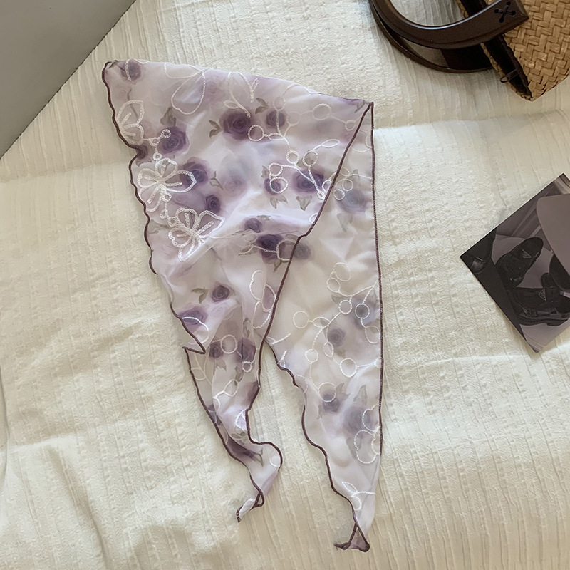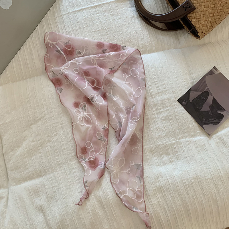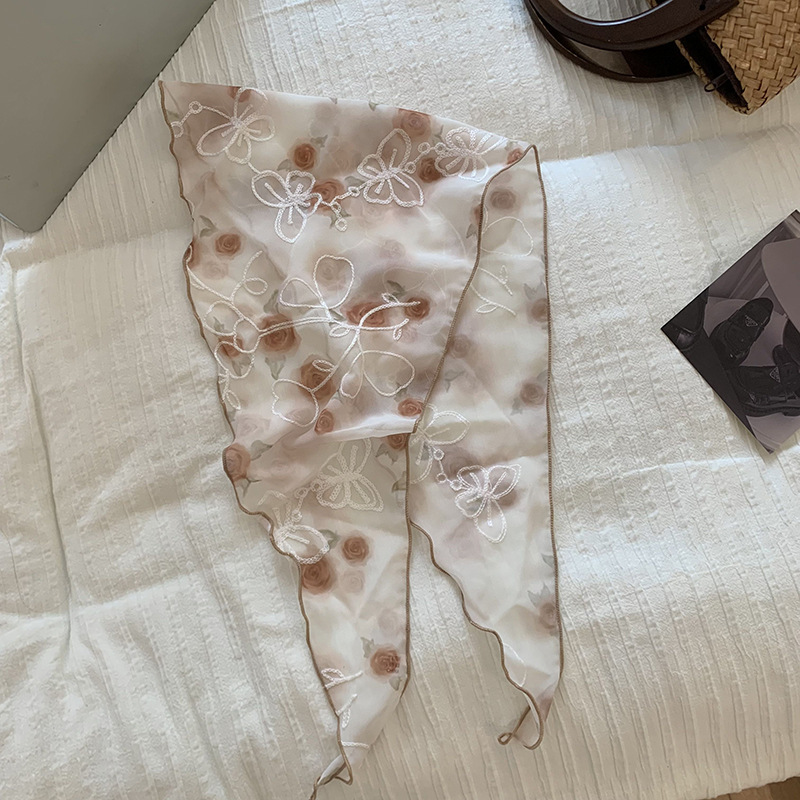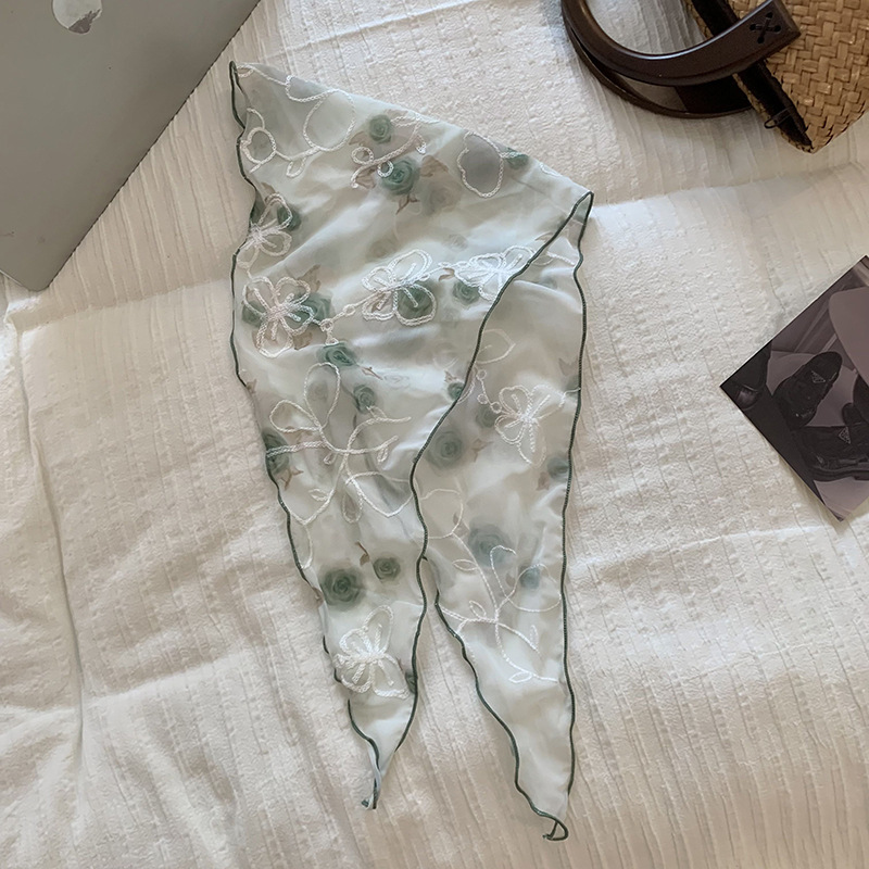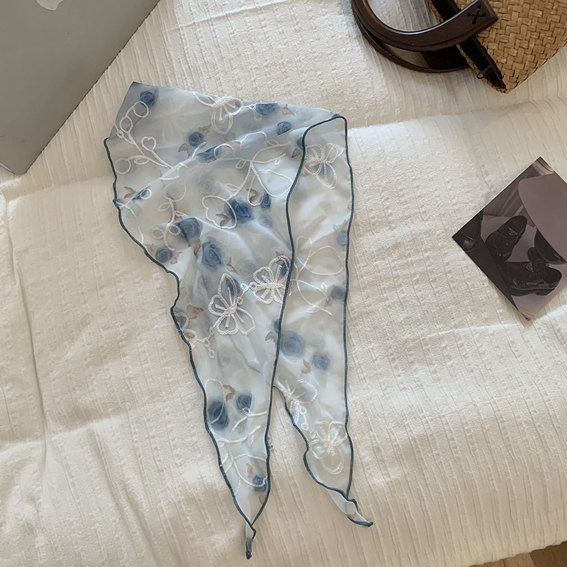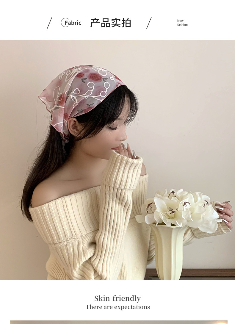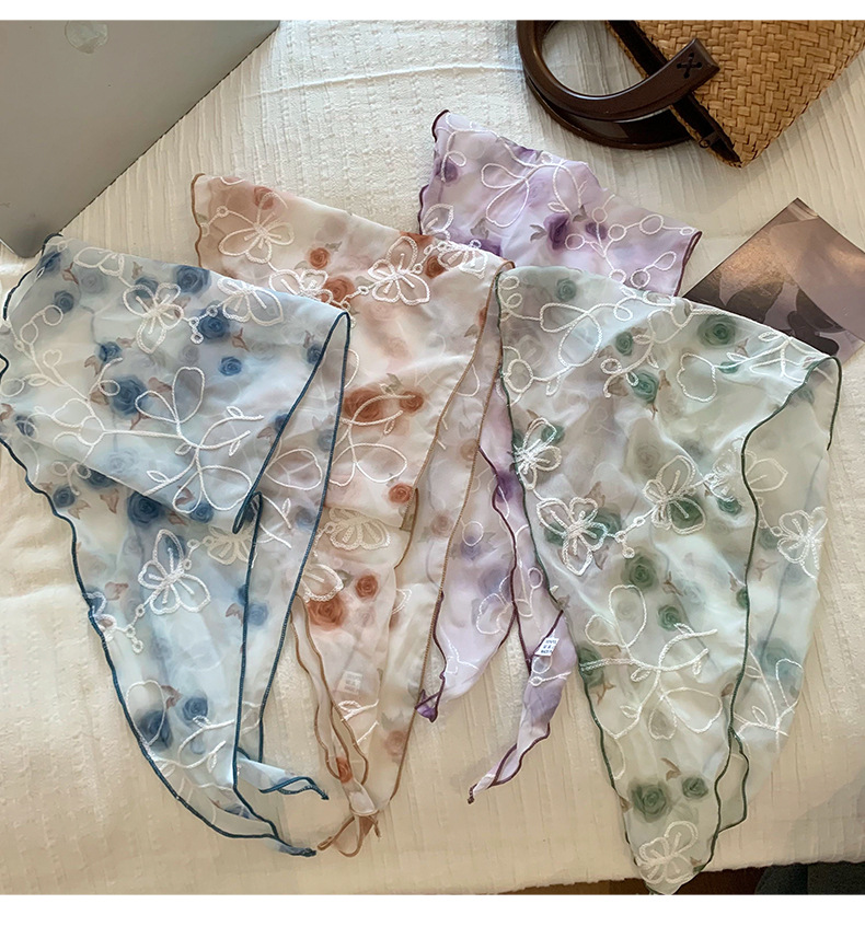 包头巾夏女田园春夏款法式刺绣蕾丝三角巾围脖女领巾百搭丝巾批发 English | 投诉