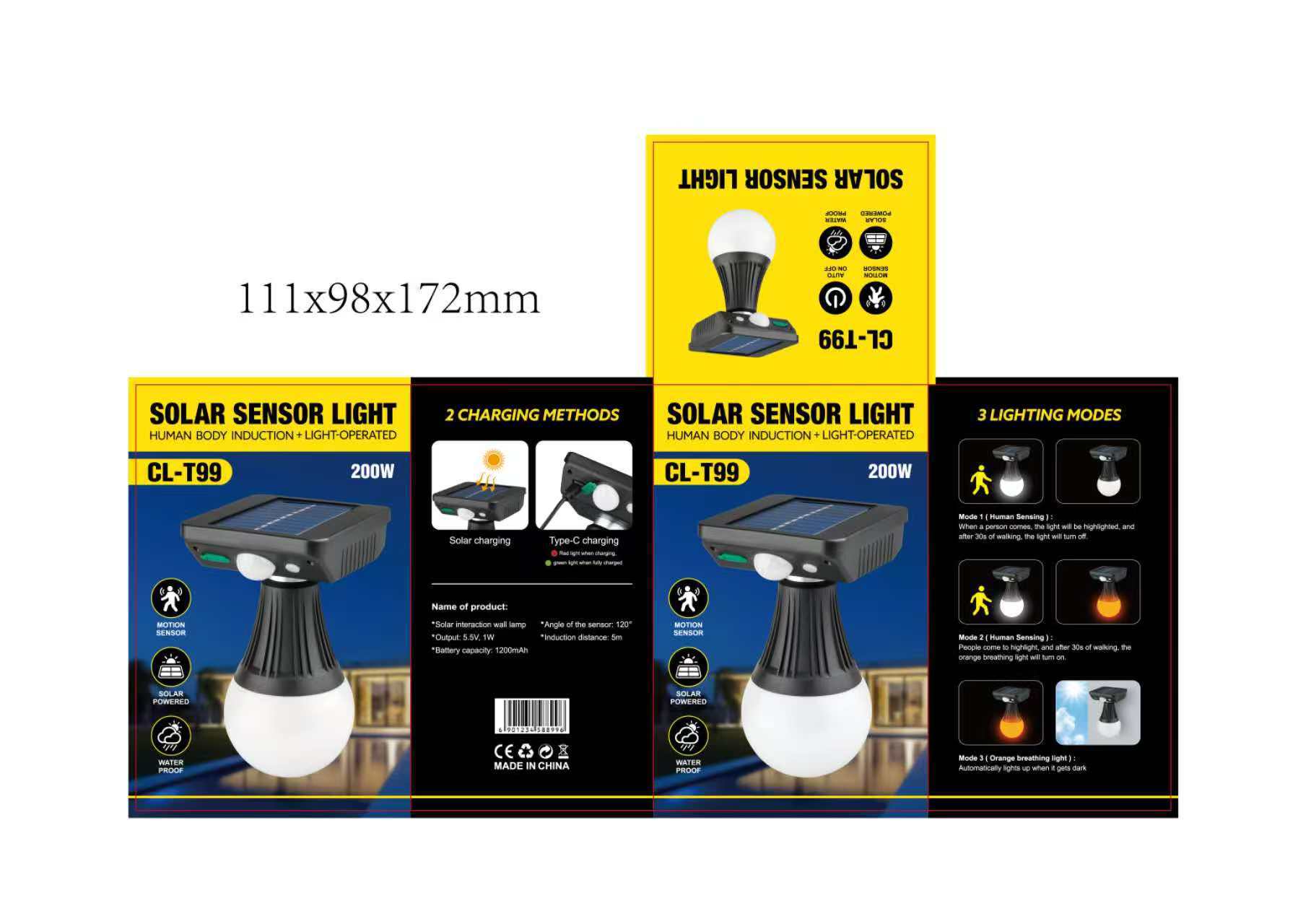 型号:CL-T99太阳能感应双色壁灯