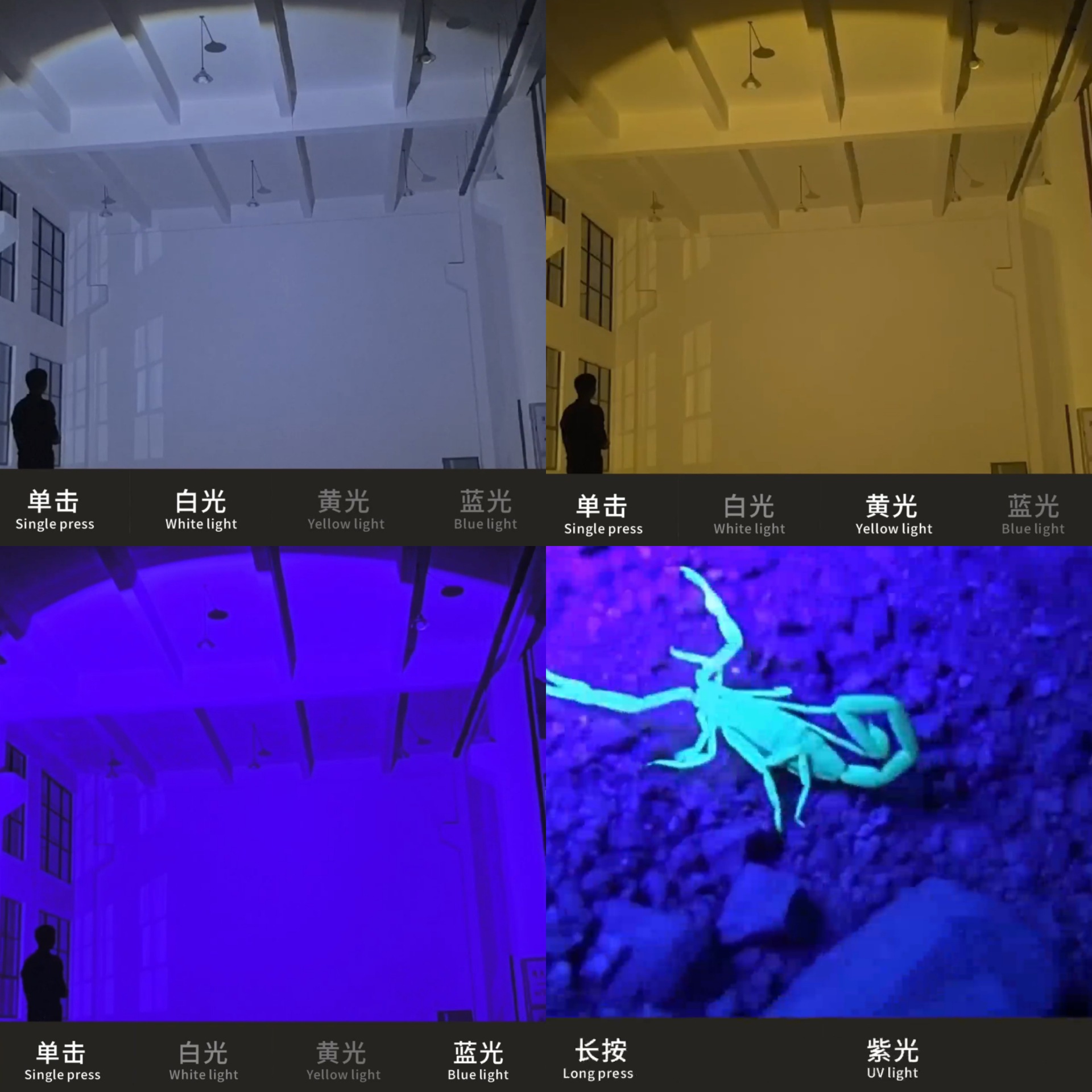 灯光颜色:白光+黄光+蓝光+紫光