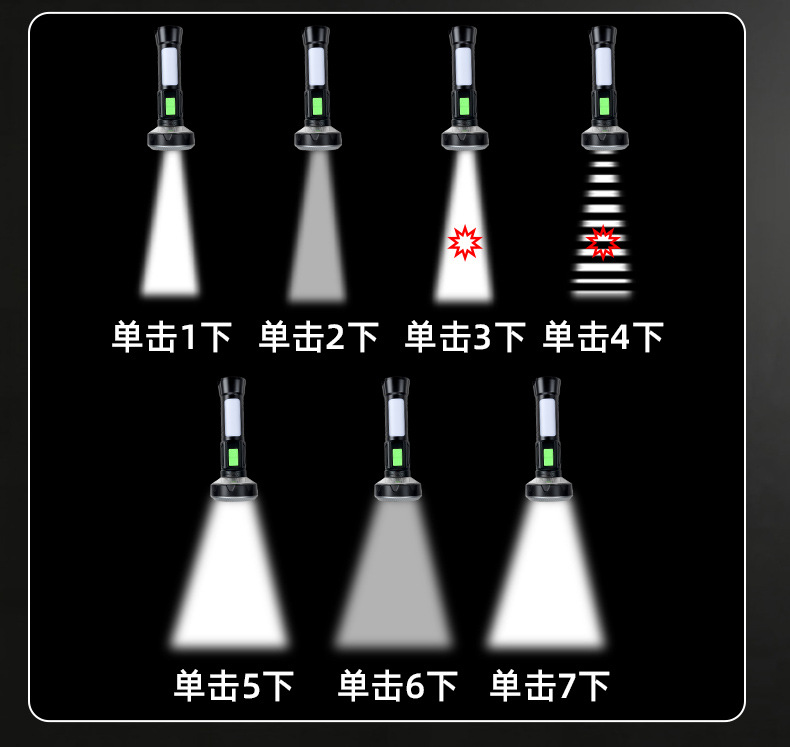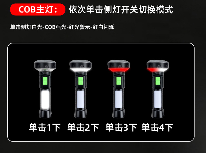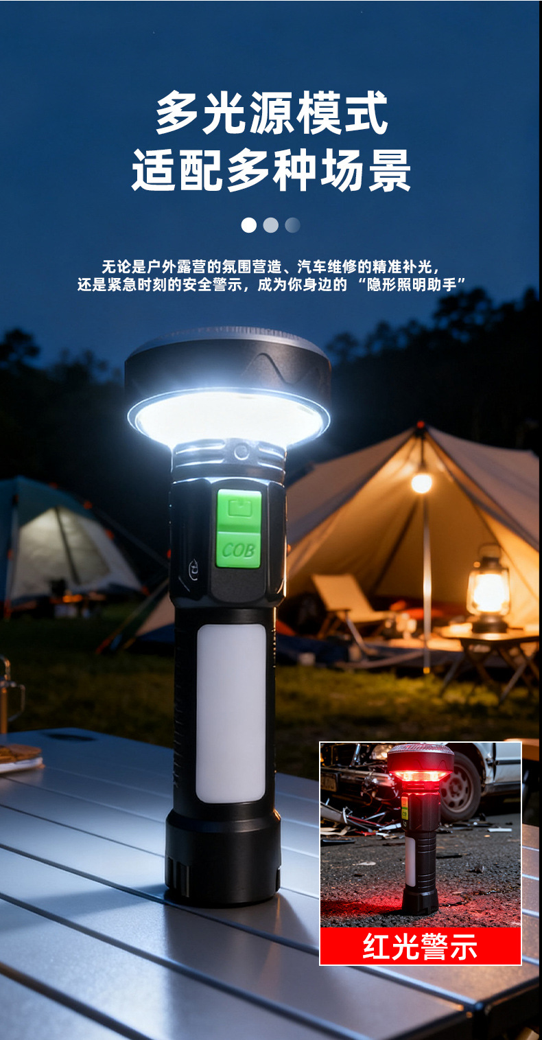功能:USB输出,尾部带磁铁,电量显示,警示灯