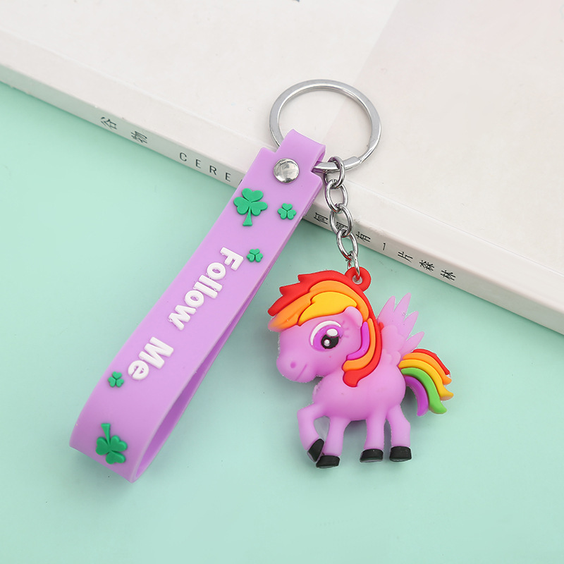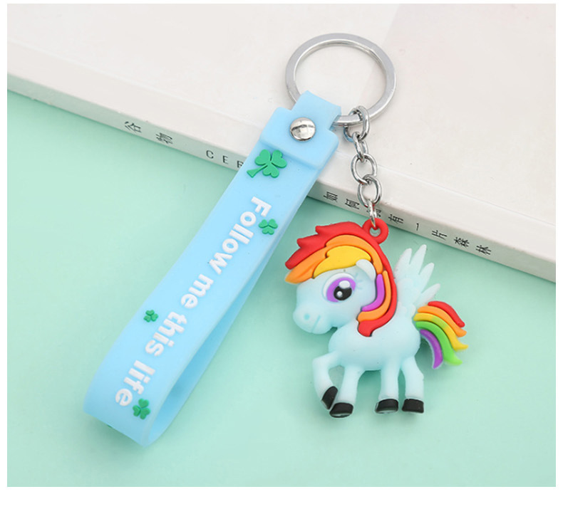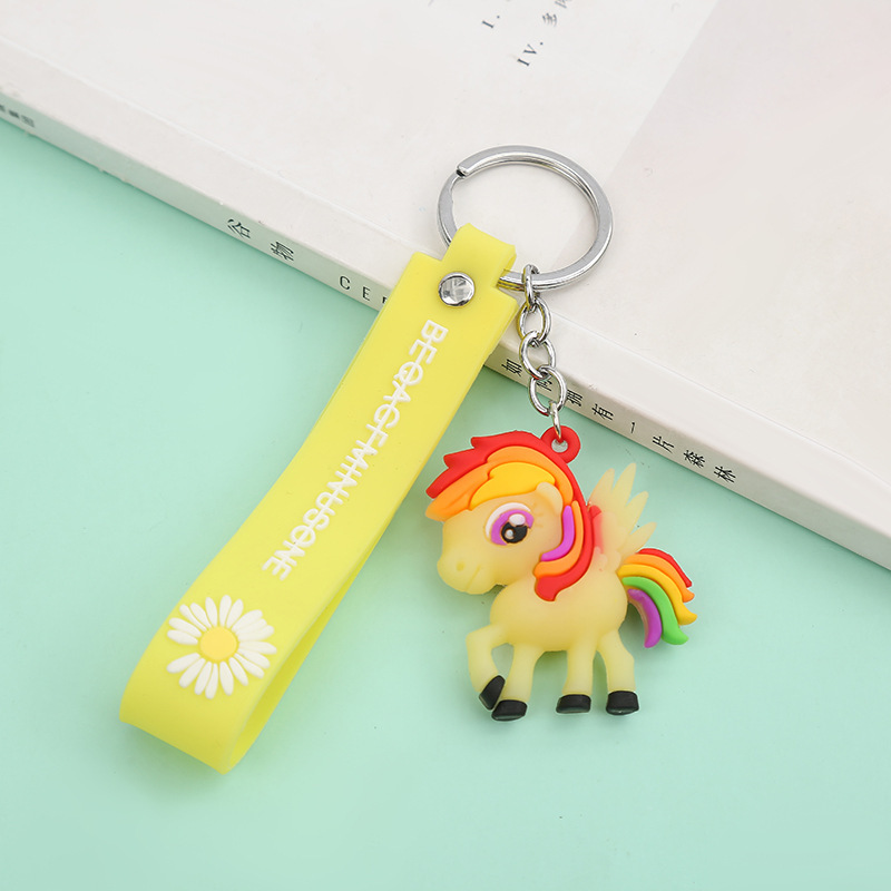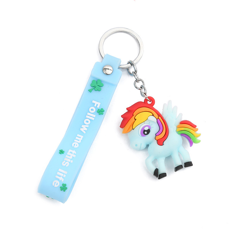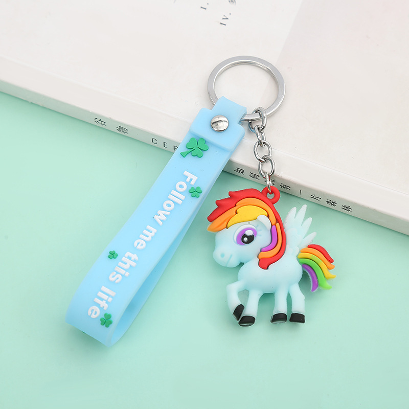 新款创意卡通独角兽钥匙扣可爱滴胶汽车书包挂件配饰批发