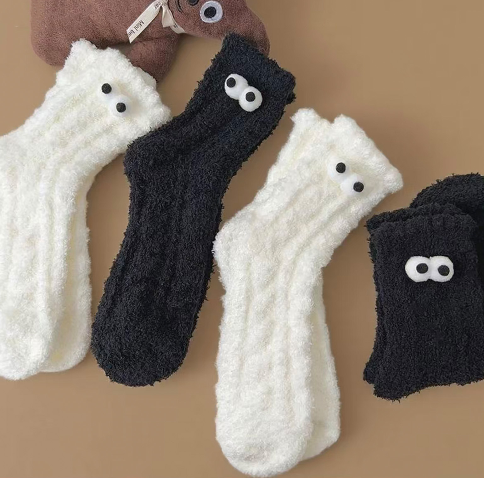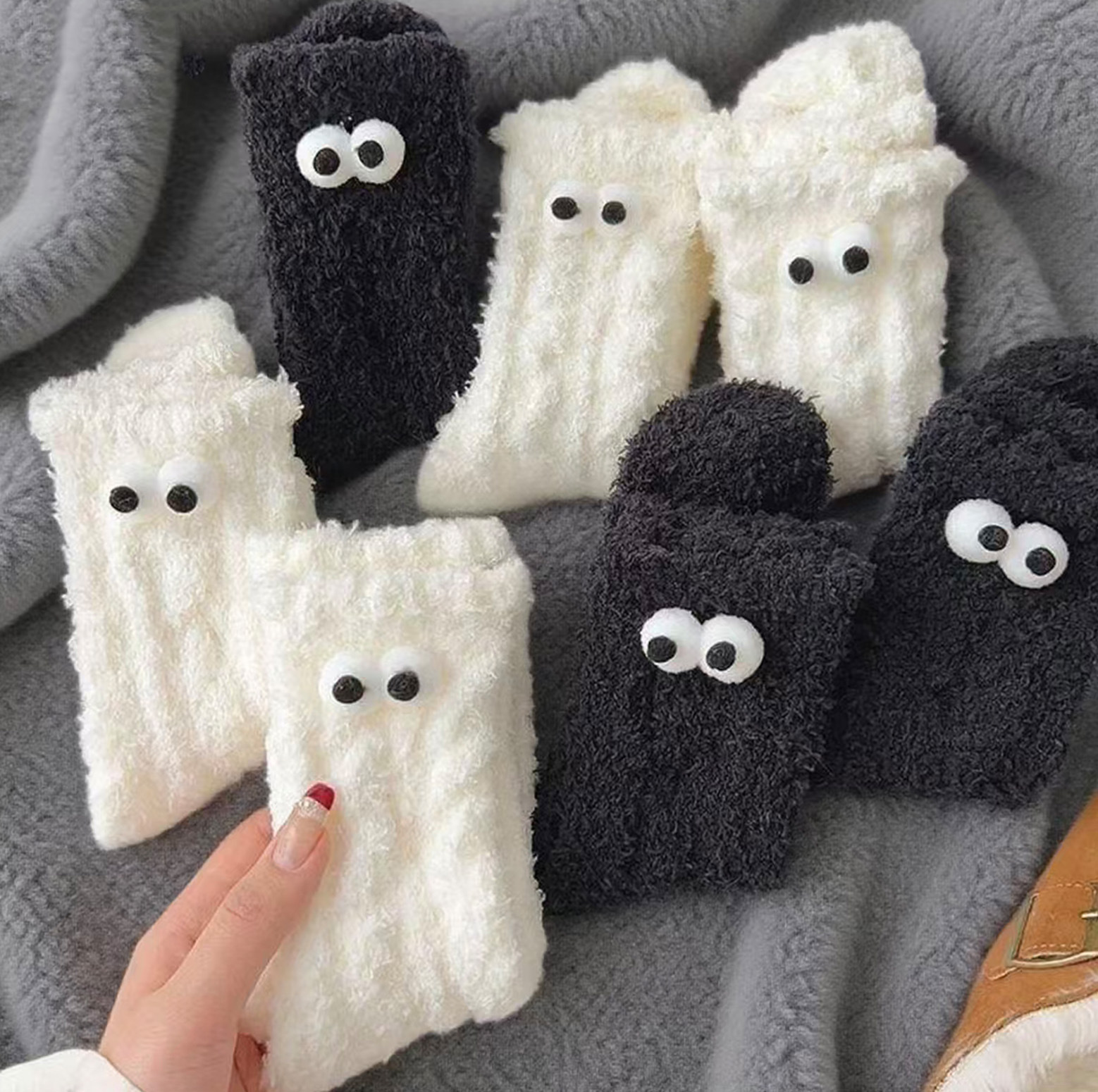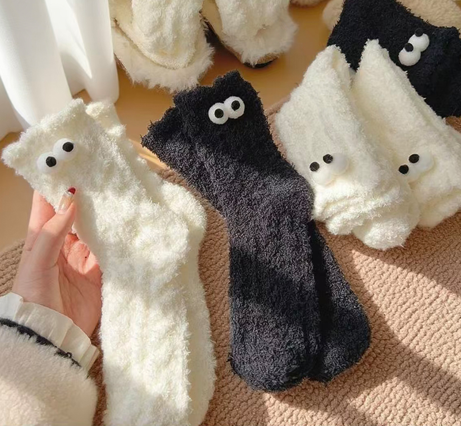 搞怪可爱丑萌毛绒袜子女秋冬袜子加厚保暖毛毛地板袜家居睡眠袜中