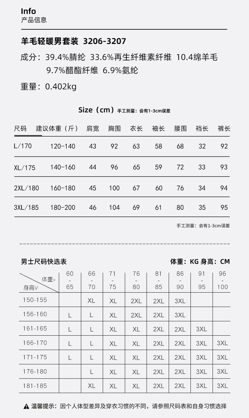 | 3XL码(建议180~200斤) | ¥12475 | 0件可售 |