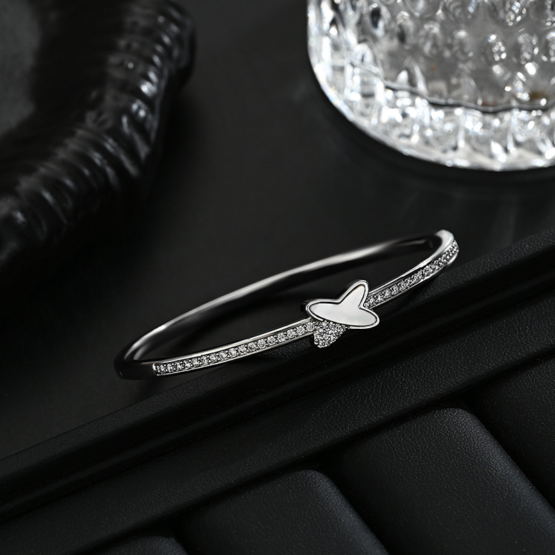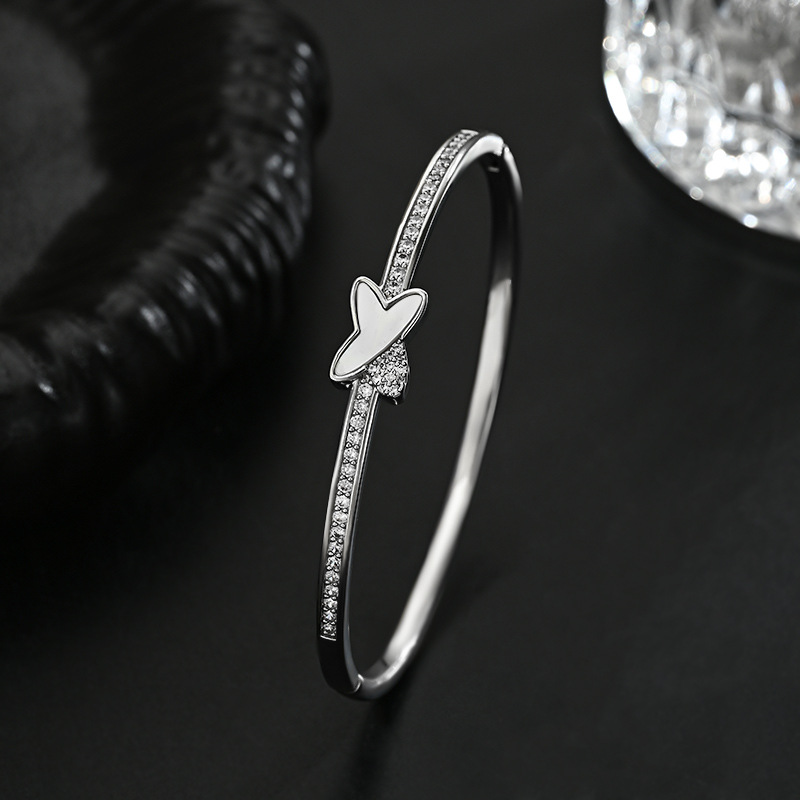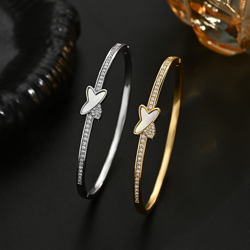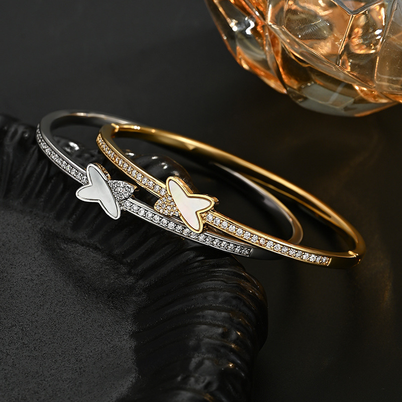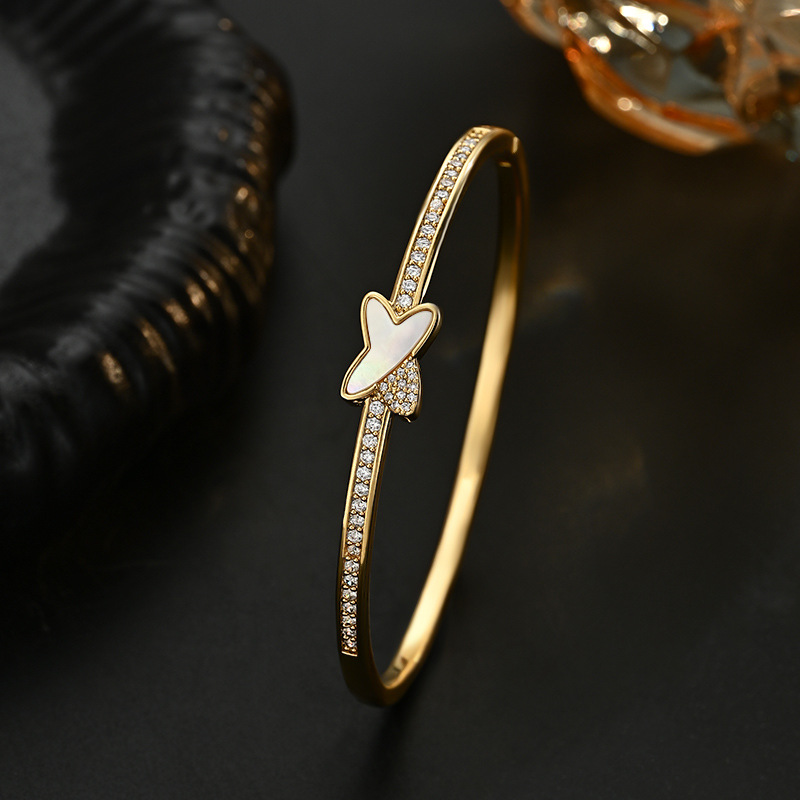 真金电镀微镶锆石个性手饰品女高级感天然贝壳交叉手镯通勤风手环