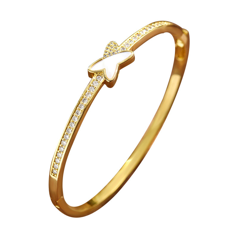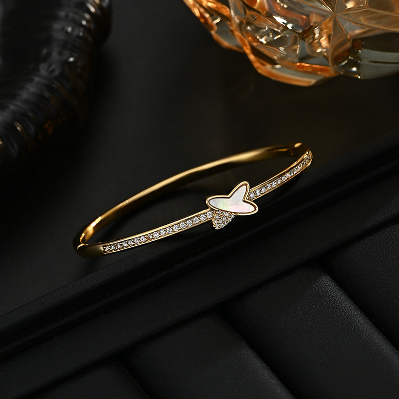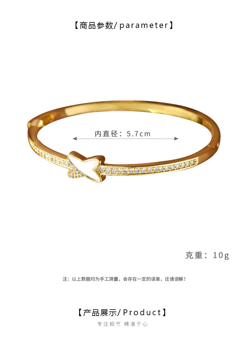 真金电镀微镶锆石个性手饰品女高级感天然贝壳交叉手镯通勤风手环 English | 投诉