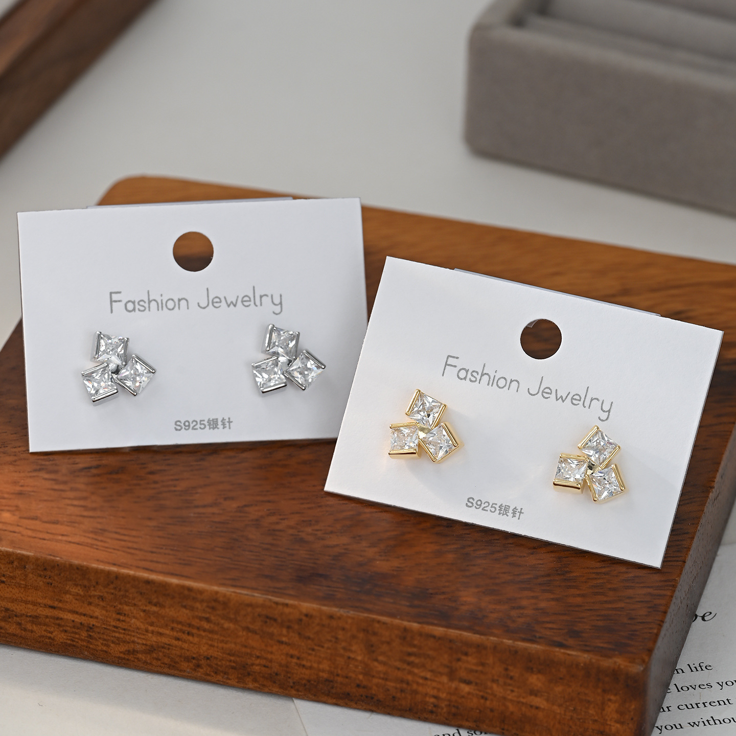 S925银针韩版时尚个性耳饰小众设高级感锆石几何放糖耳饰网红耳坠 English | 投诉