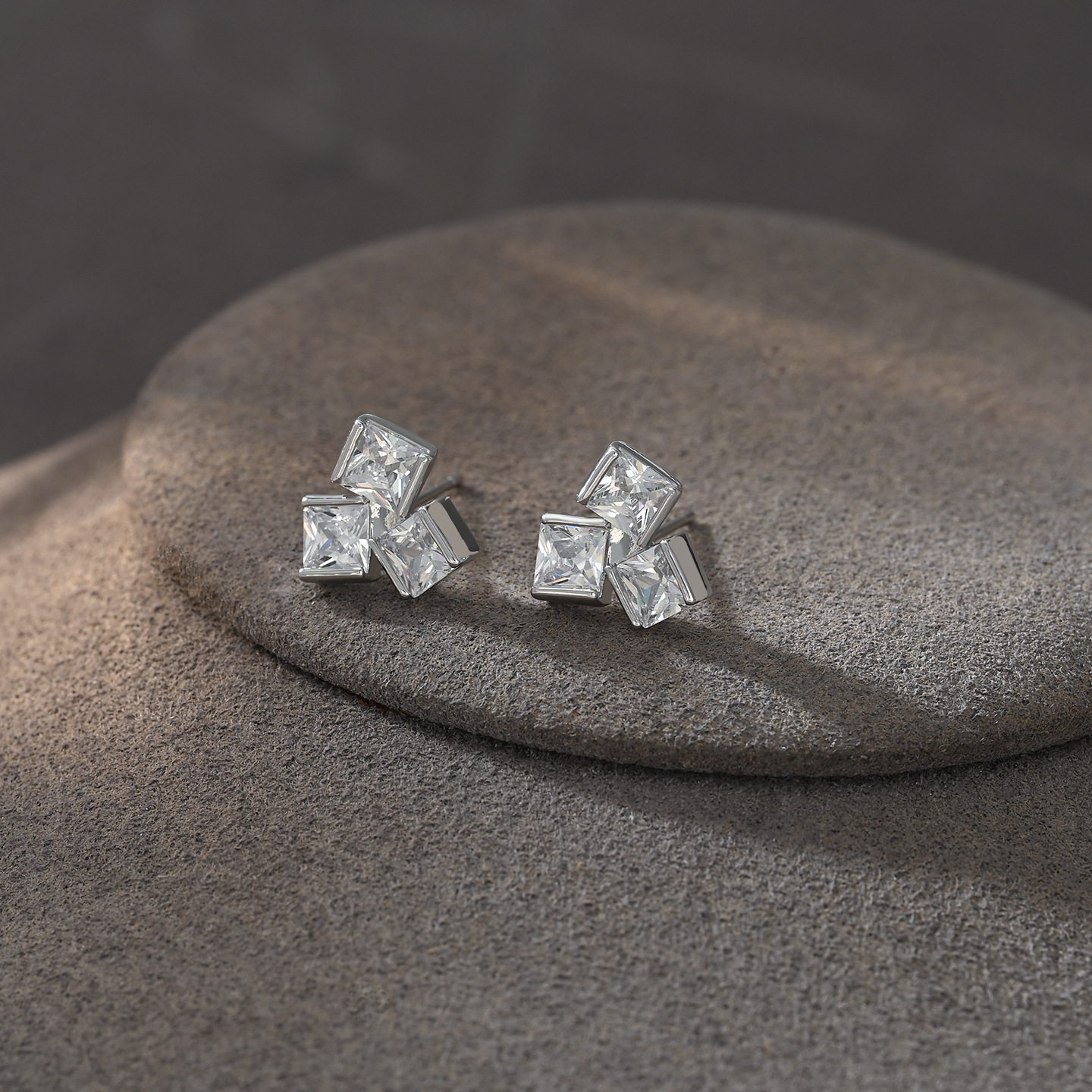 S925银针韩版时尚个性耳饰小众设高级感锆石几何放糖耳饰网红耳坠