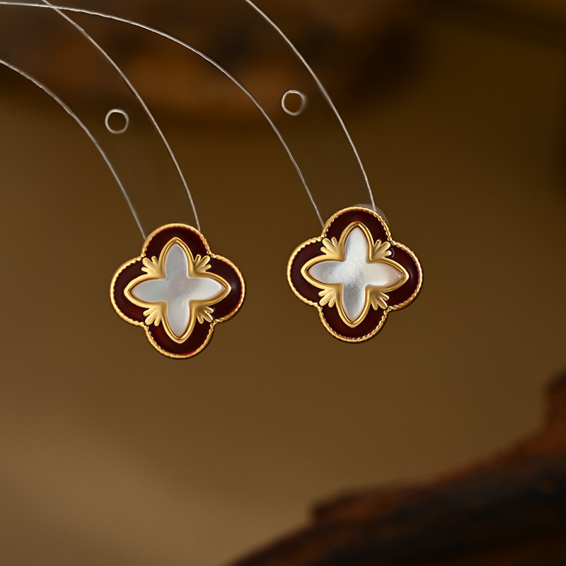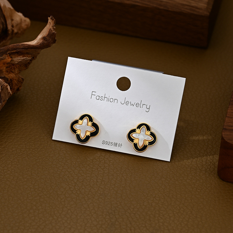 时尚小众设计感百搭四叶草耳钉精致日常风通勤必备耳饰品厂家直销 English | 投诉