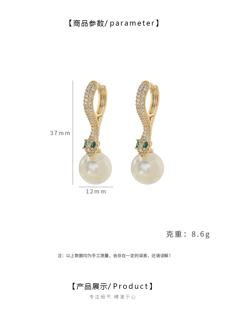 秋冬新款复古法式珍珠耳环女小众设计高级感锆石蛇耳饰品欧美耳扣 English | 投诉
