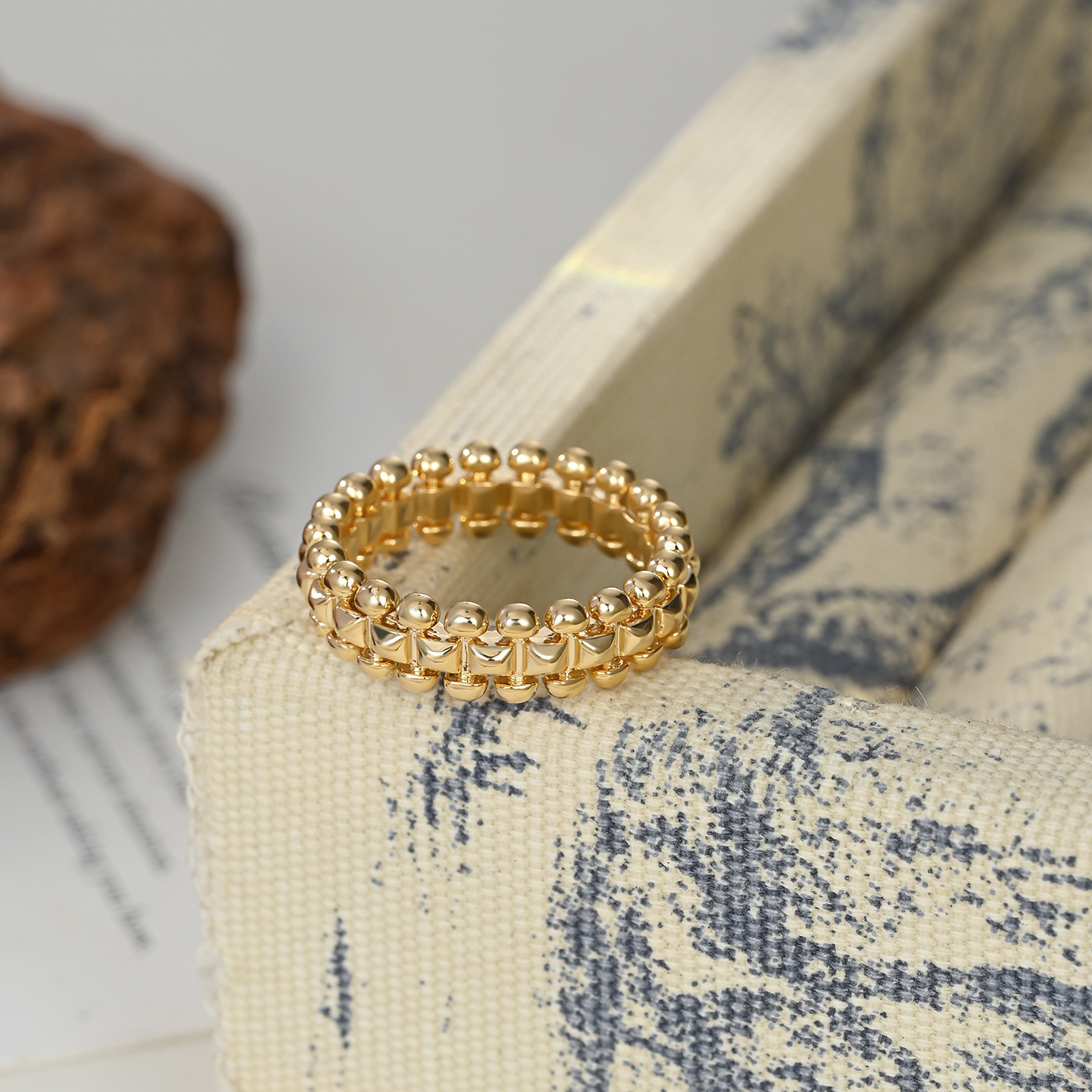 真金电镀双排铆钉戒指男女宽版转动子弹头情侣对戒时尚高级饰品
