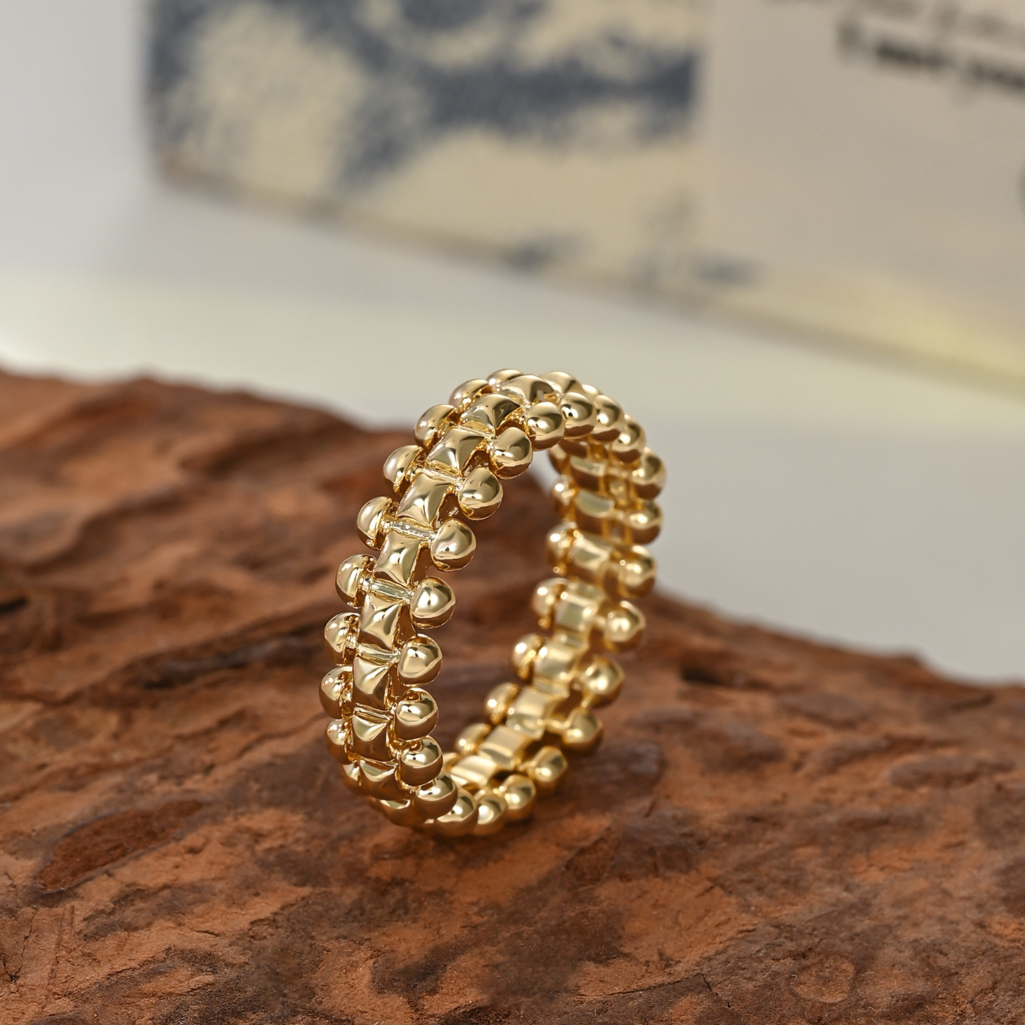 真金电镀双排铆钉戒指男女宽版转动子弹头情侣对戒时尚高级饰品 English | 投诉