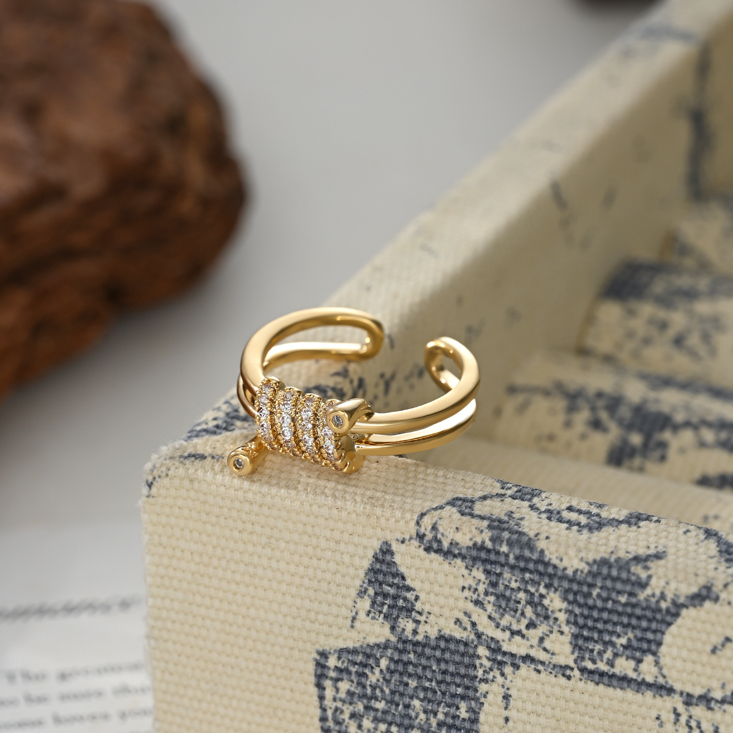 真金电镀微镶锆石个性开口戒指女小众设计感小蛮腰指环网红食指戒